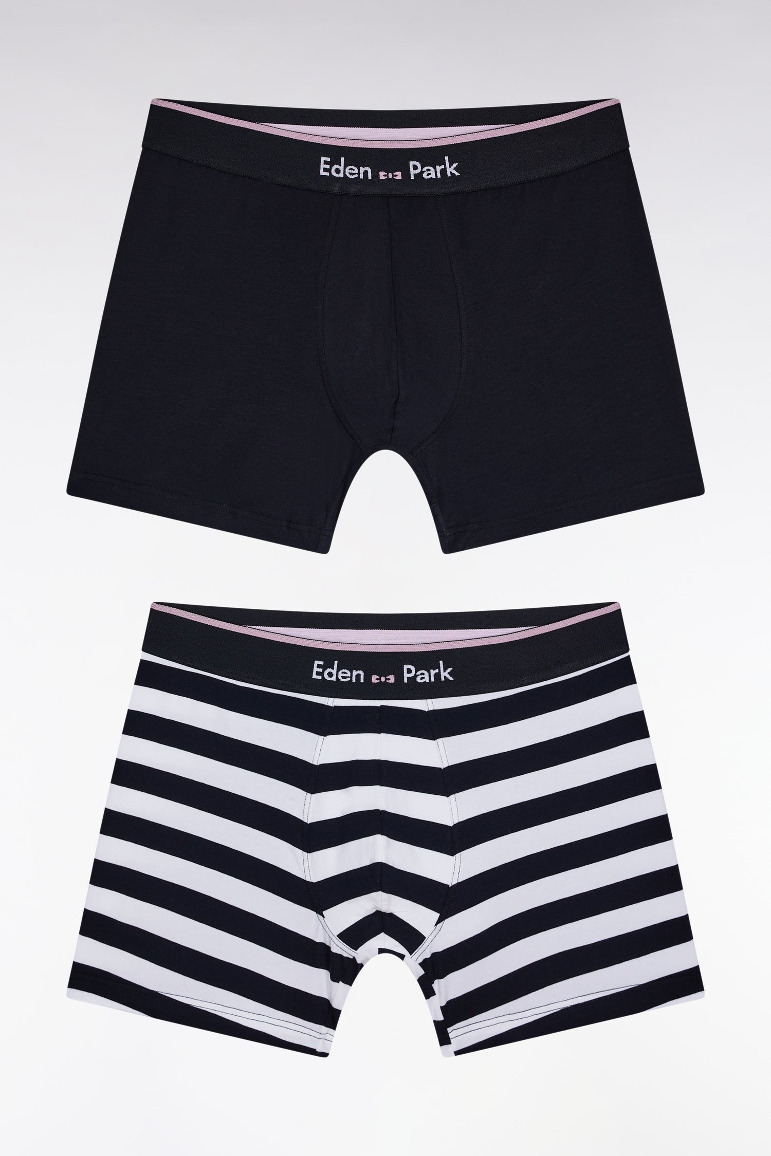 Ce lot de deux boxers en jersey de coton stretch offre un confort seconde peau tout au long de la journée. Ce pack réunit un boxer uni et un modèle à larges rayures rugby, tout deux dotés d'une bande élastiquée griffée pour suivre vos mouvements avec souplesse et style