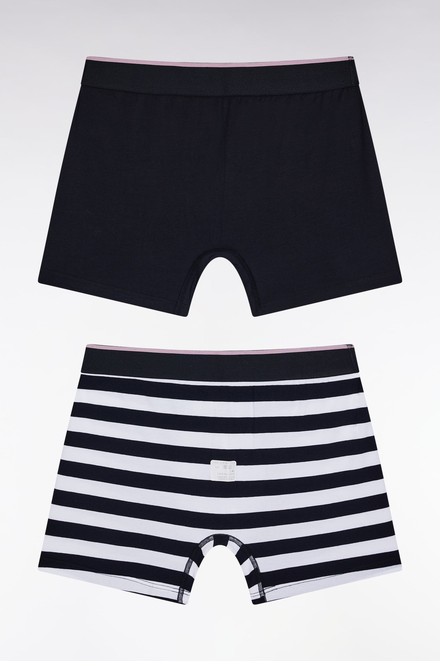 Lot de deux boxers en jersey de coton stretch marine et blanc