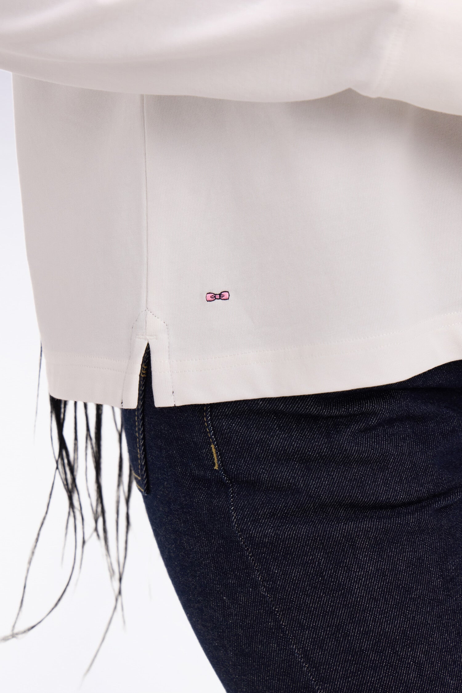 Maillot à manches longues en coton écru brodé coupe Oversized