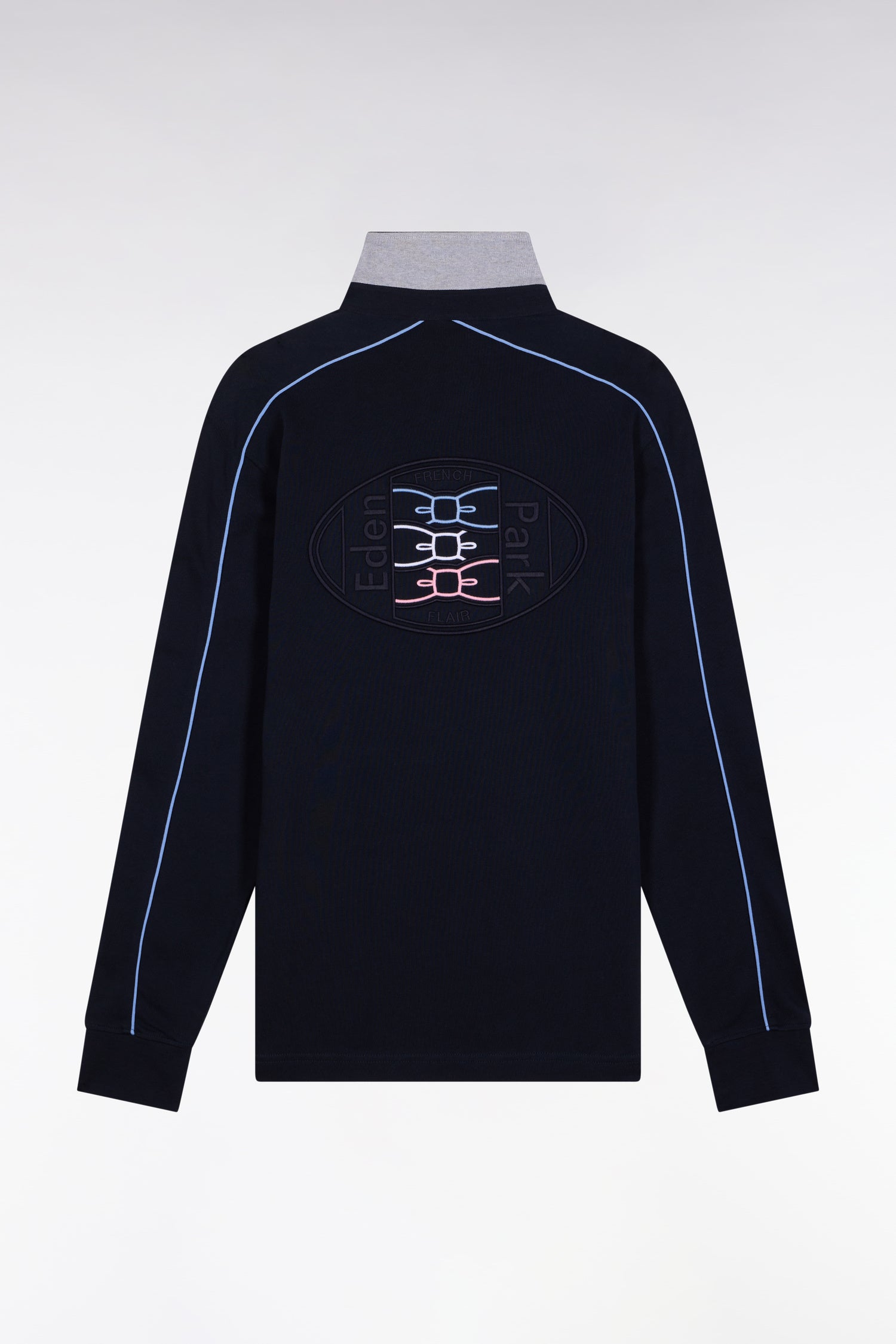 Maillot à manches longues en jersey de coton épais marine passepoils coupe droite