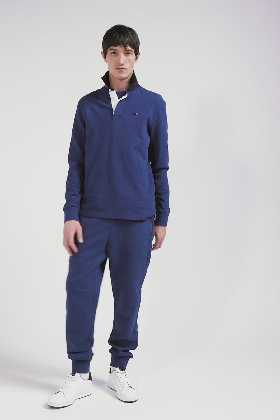 Ce maillot homme à manches longues, d'une élégance discrète avec son col ruban tricolore rehaussé d'un dessous en twill de coton rose, est sublimé par une large broderie dorsale arborant un nœud papillon tricolore, signe distinctif d'Eden Park également repris sur un badge gomme sur une base en feutre pour orner son plastron. Un mariage harmonieux de couleurs et matière de haute qualité confère à cette pièce masculine une allure raffinée et sportive à la fois.
