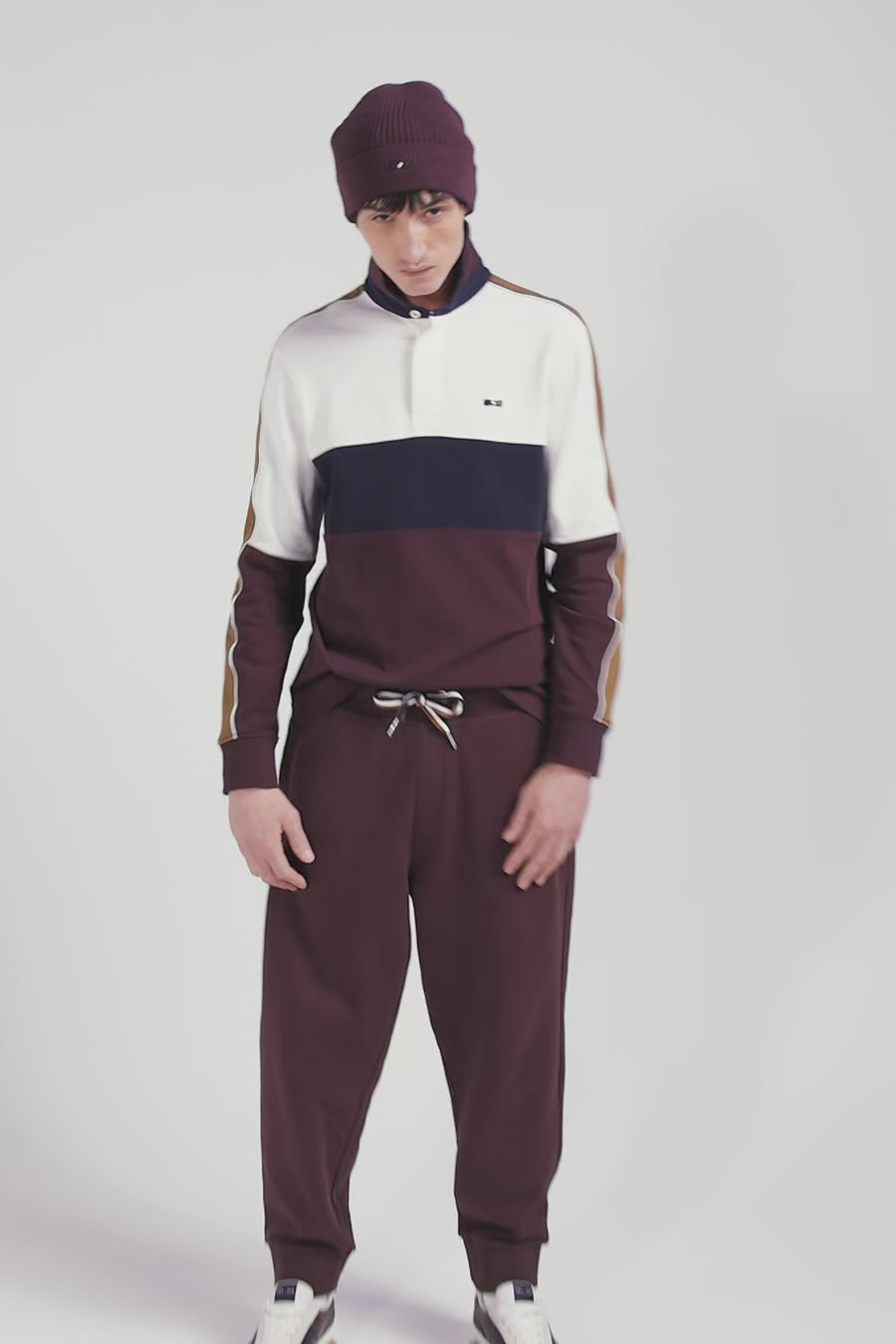Maillot manches longues en coton bordeaux broderie dos et passepoil coupe Regular