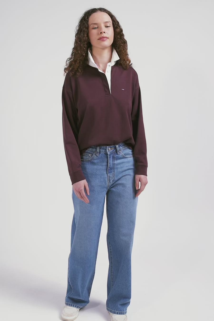 Maillot manches longues en coton bordeaux coupe Relaxed