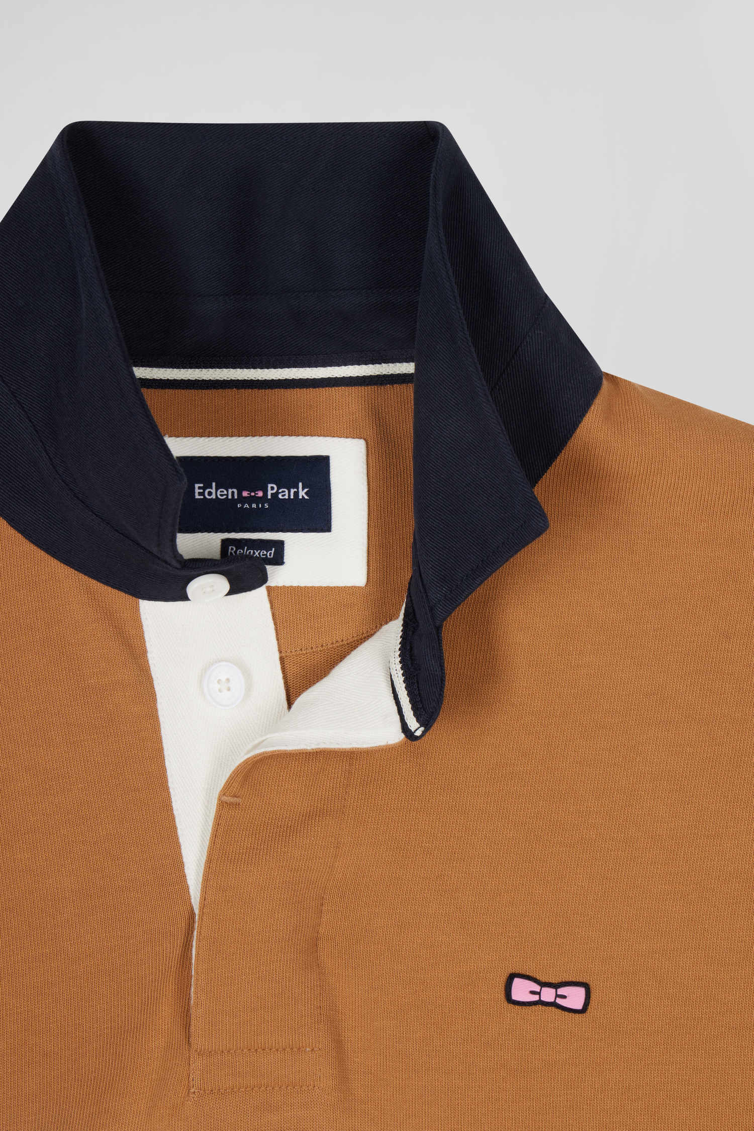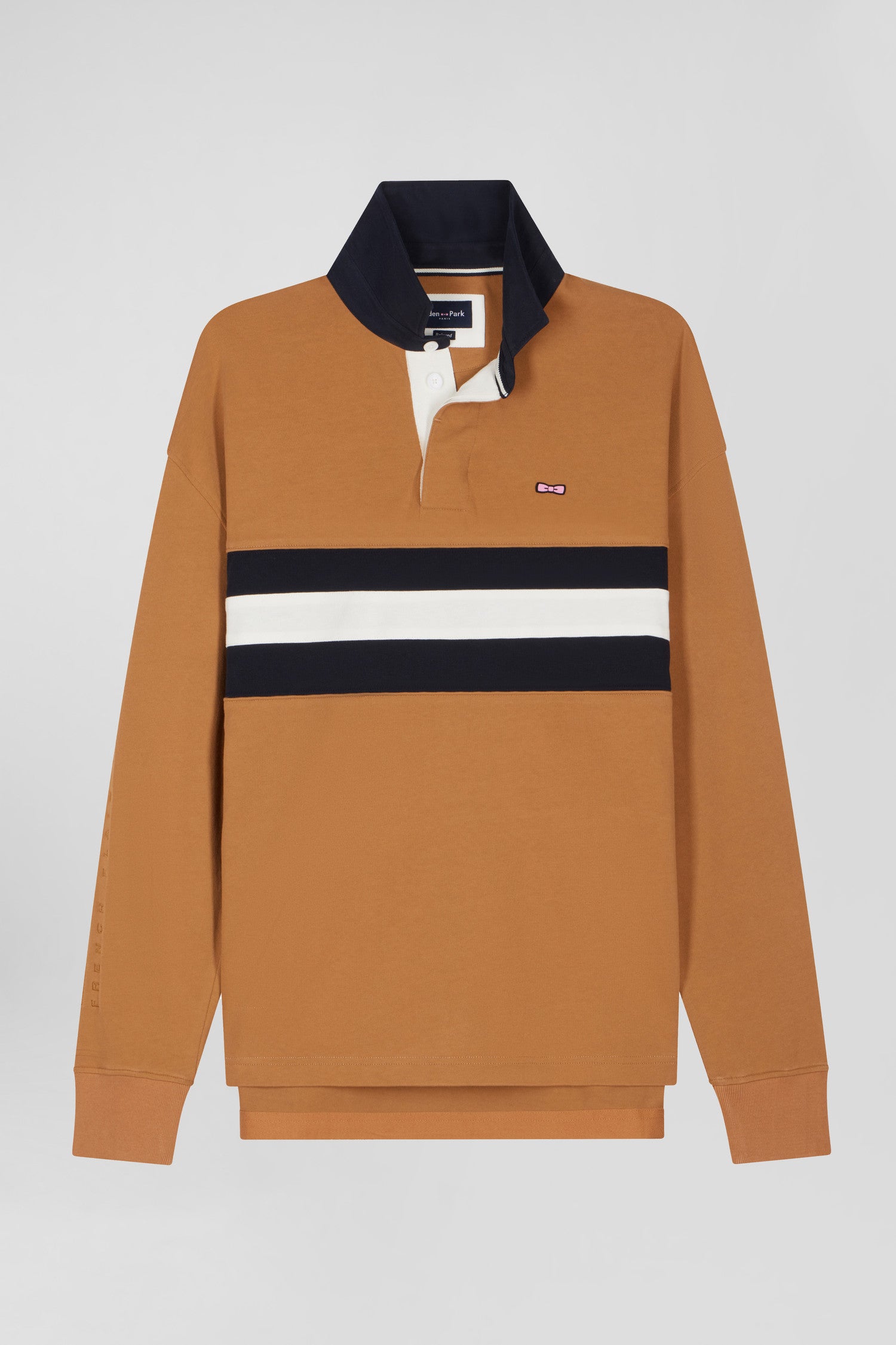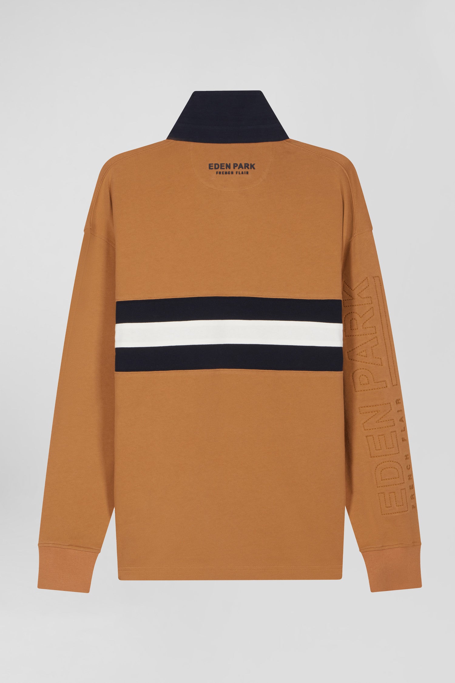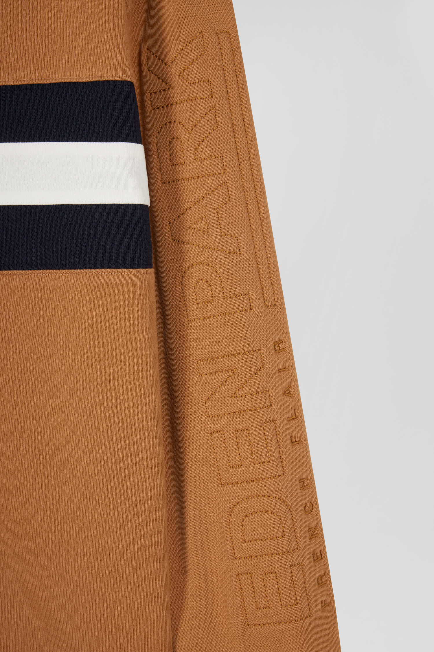 Maillot manches longues en coton camel brodé coupe Relaxed