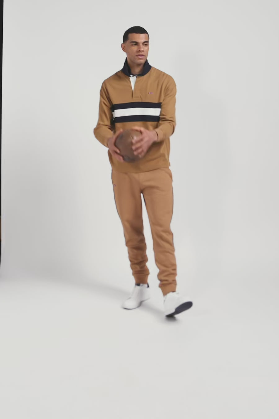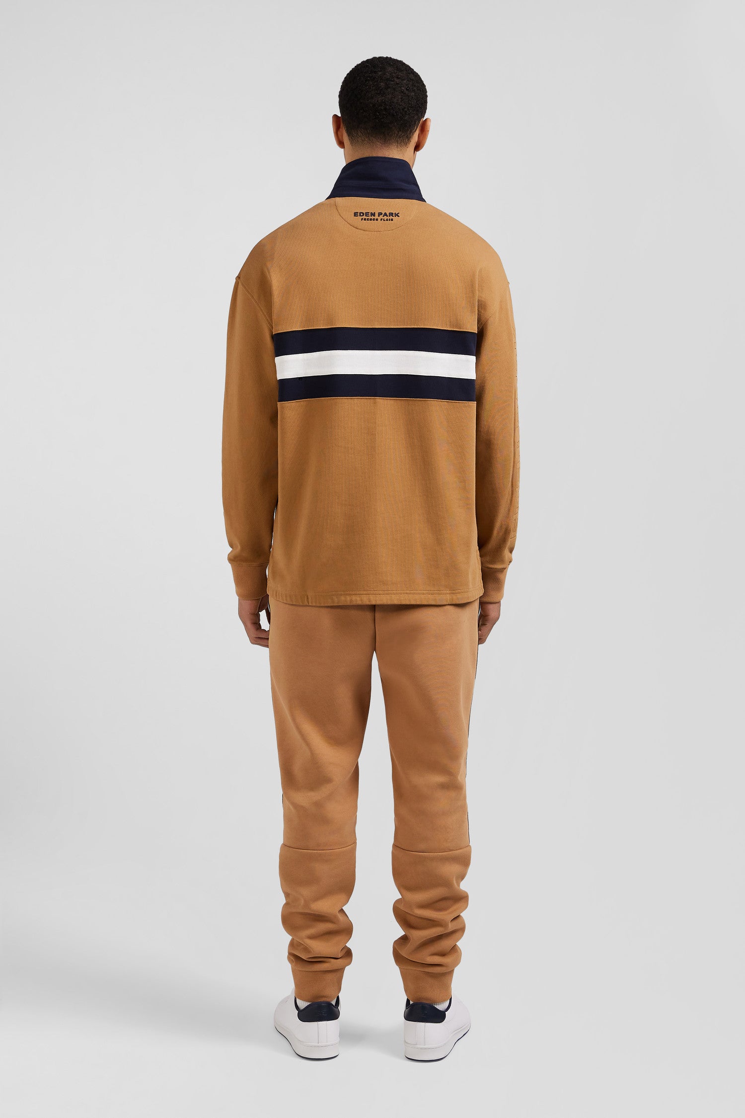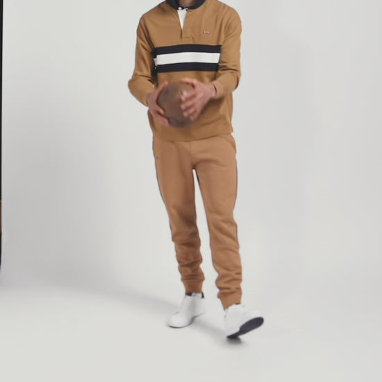 Pantalon jogging en coton mélangé camel galon rayé coupe Regular