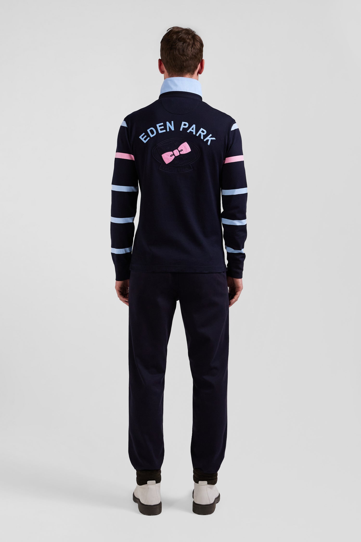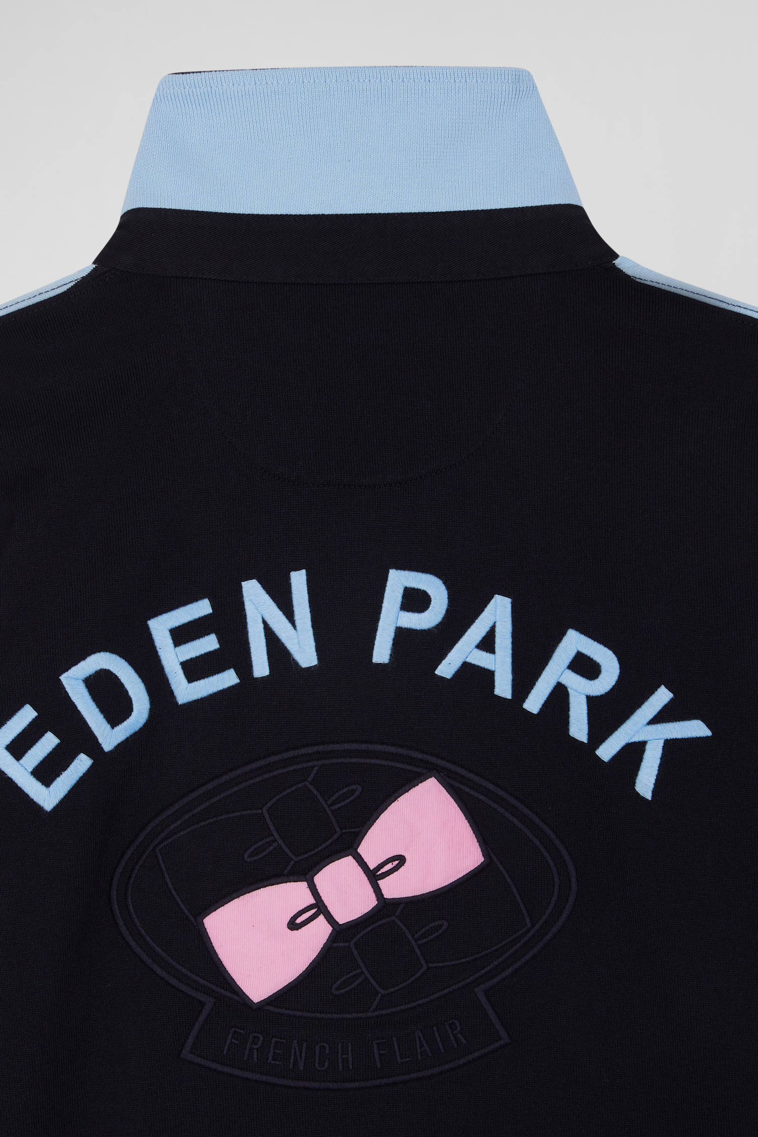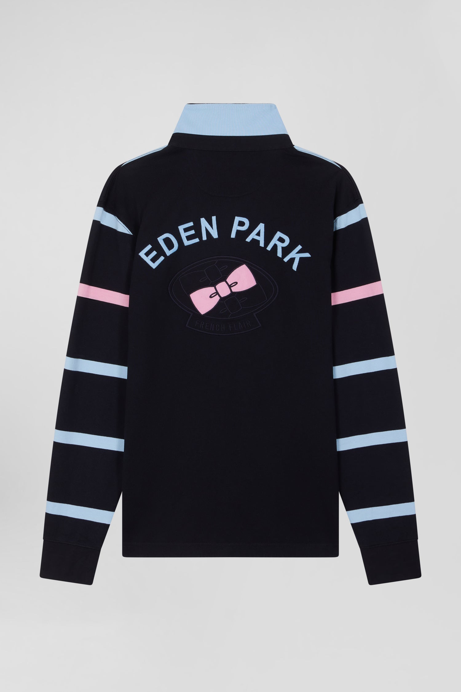 Maillot manches longues en coton cerclé bleu marine et ciel broderie dos coupe Regular