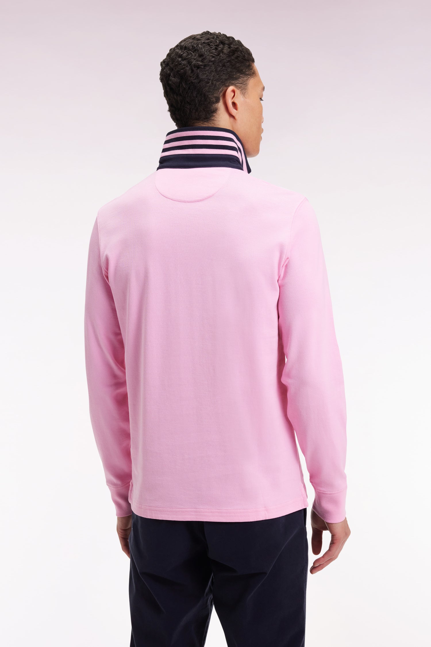 Maillot manches longues en jersey rose dessous de col rayé