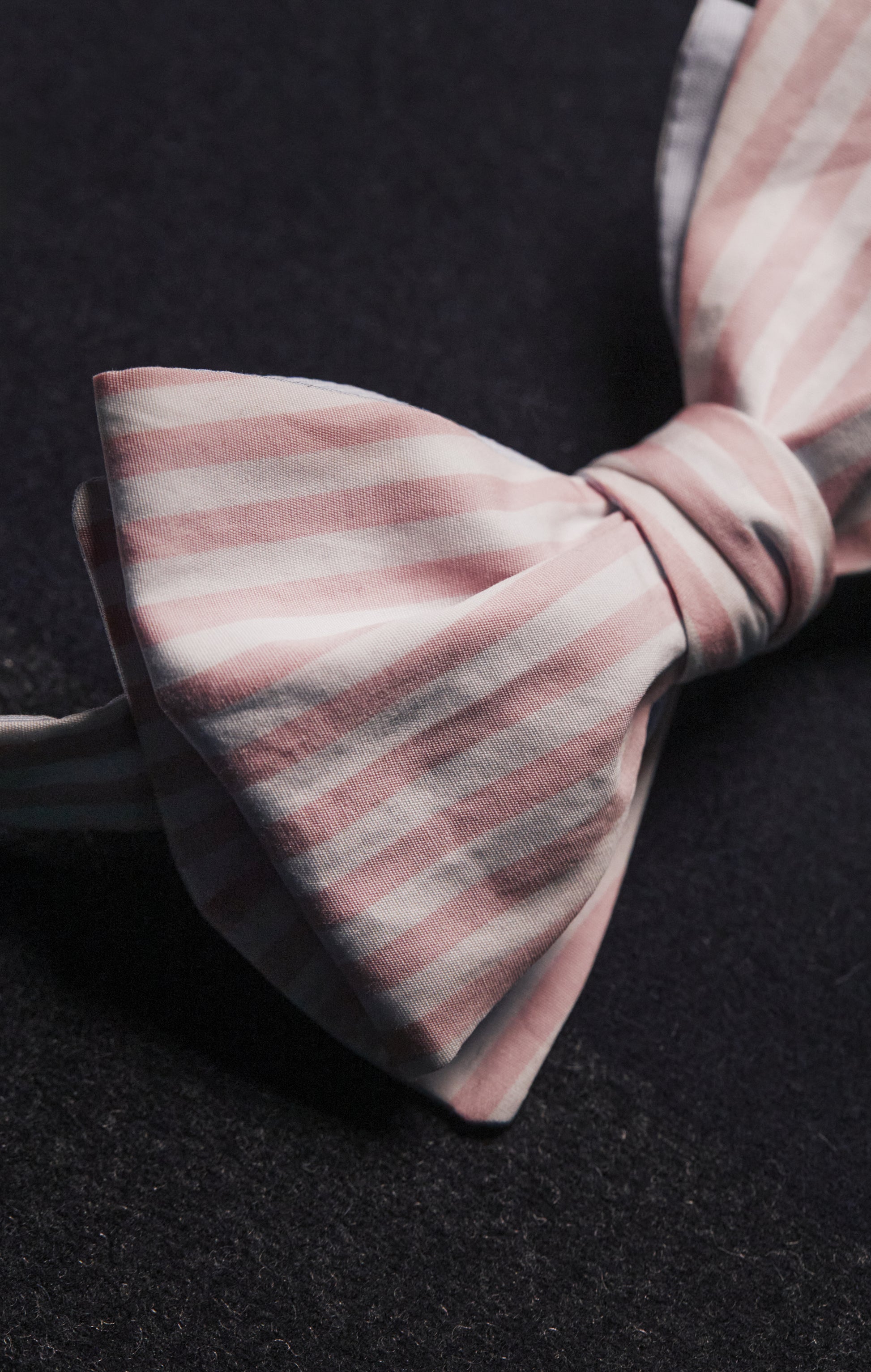 Nœud papillon rayé rose et blanc upcyclé Pap'Atelier