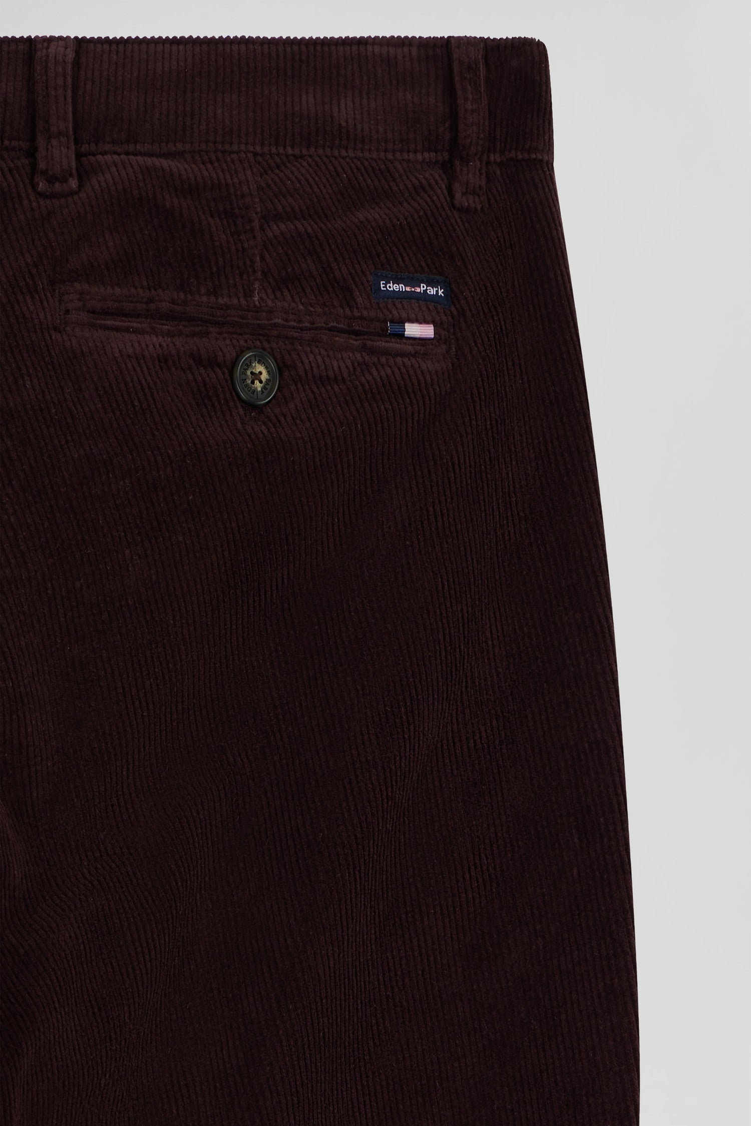 Pantalon chino en coton velours stretch bordeaux coupe Regular