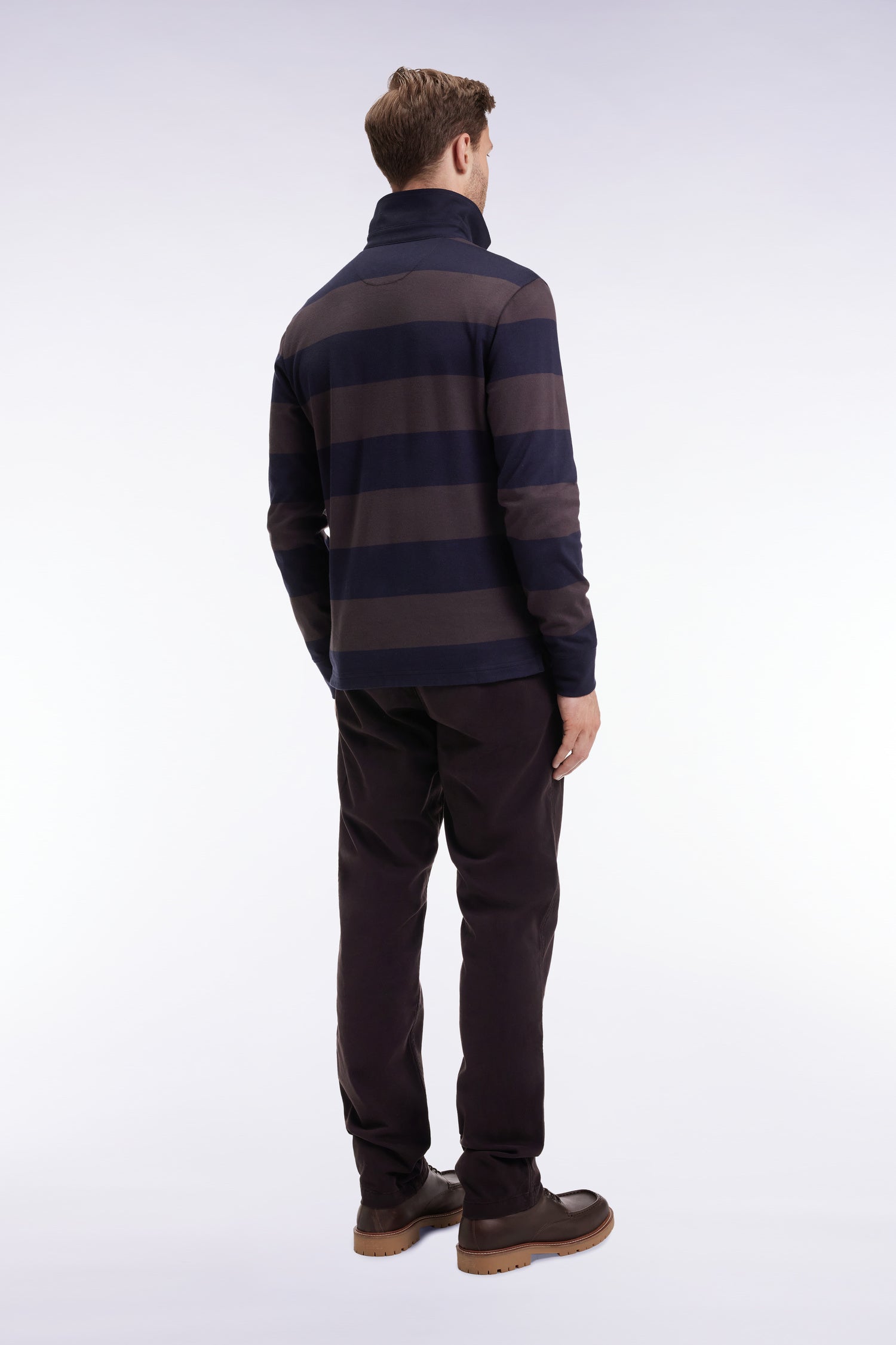 Pensé pour conjuguer style et aisance, ce chino en coton stretch offre une silhouette structurée sans jamais compromettre le confort. Sa coupe droite sans pli, épurée et polyvalente, en fait un allié du quotidien aussi