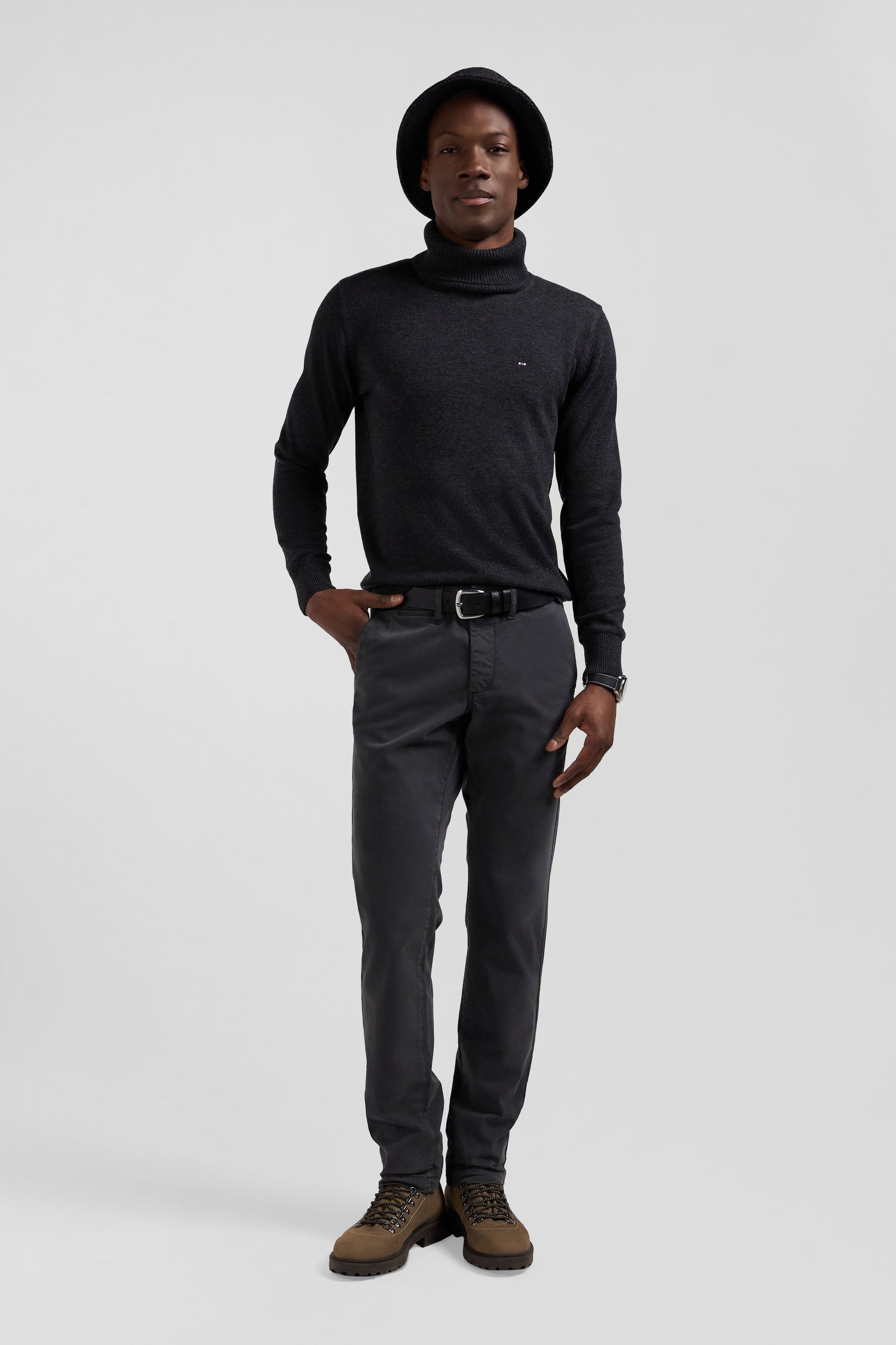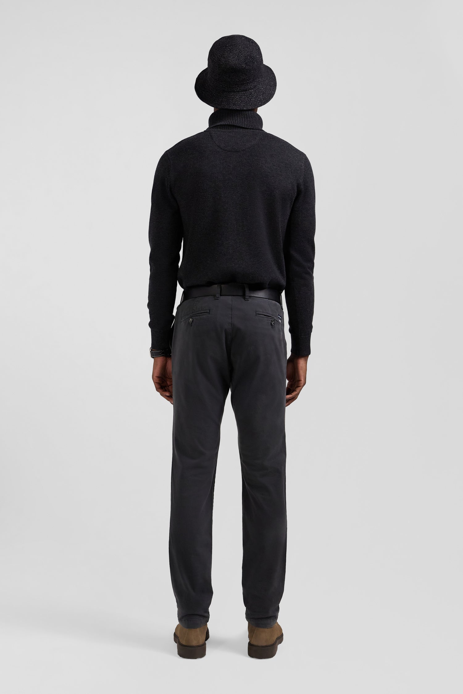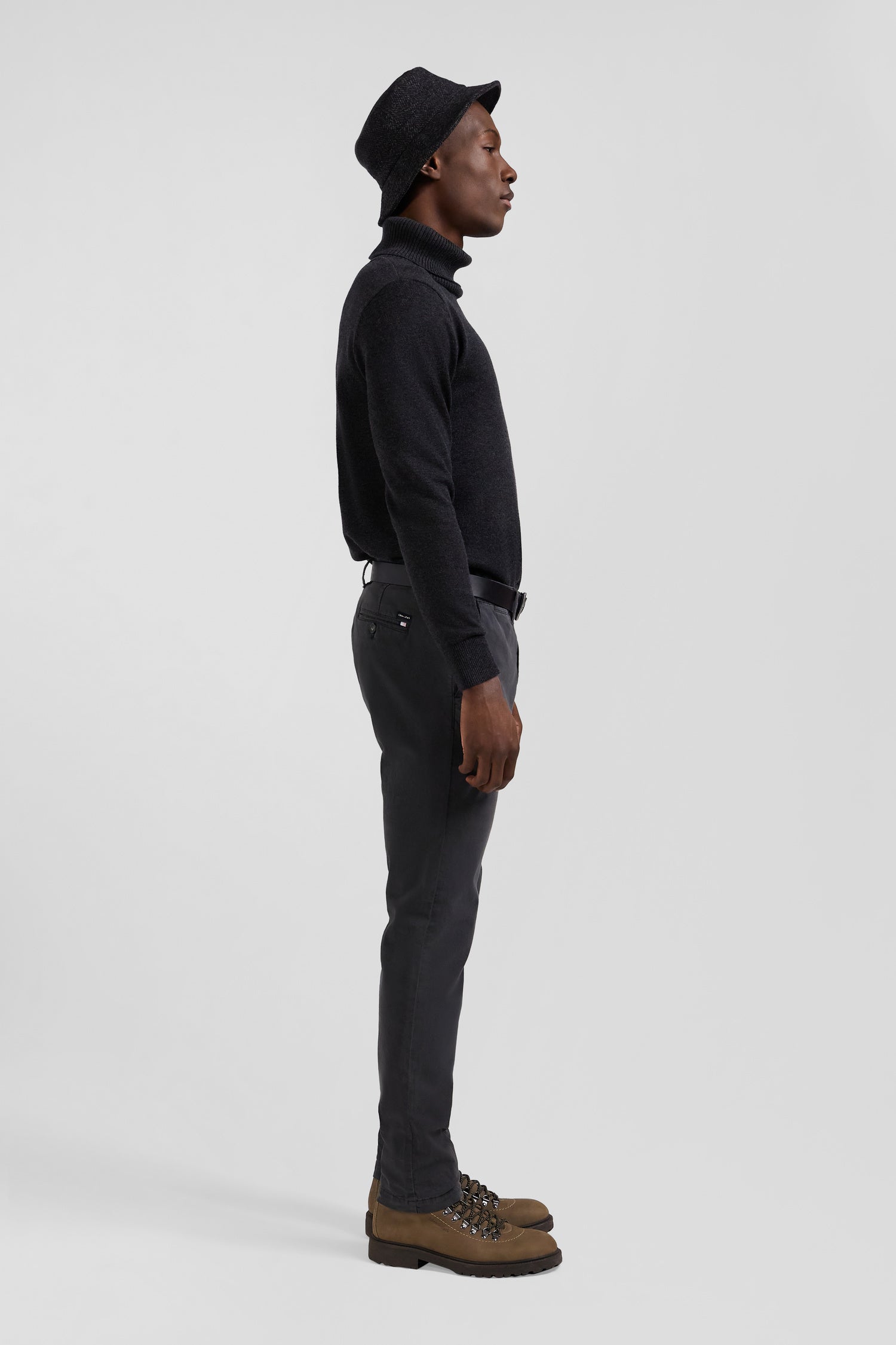 Pantalon chino uni en coton stretch gris anthracite coupe Slim