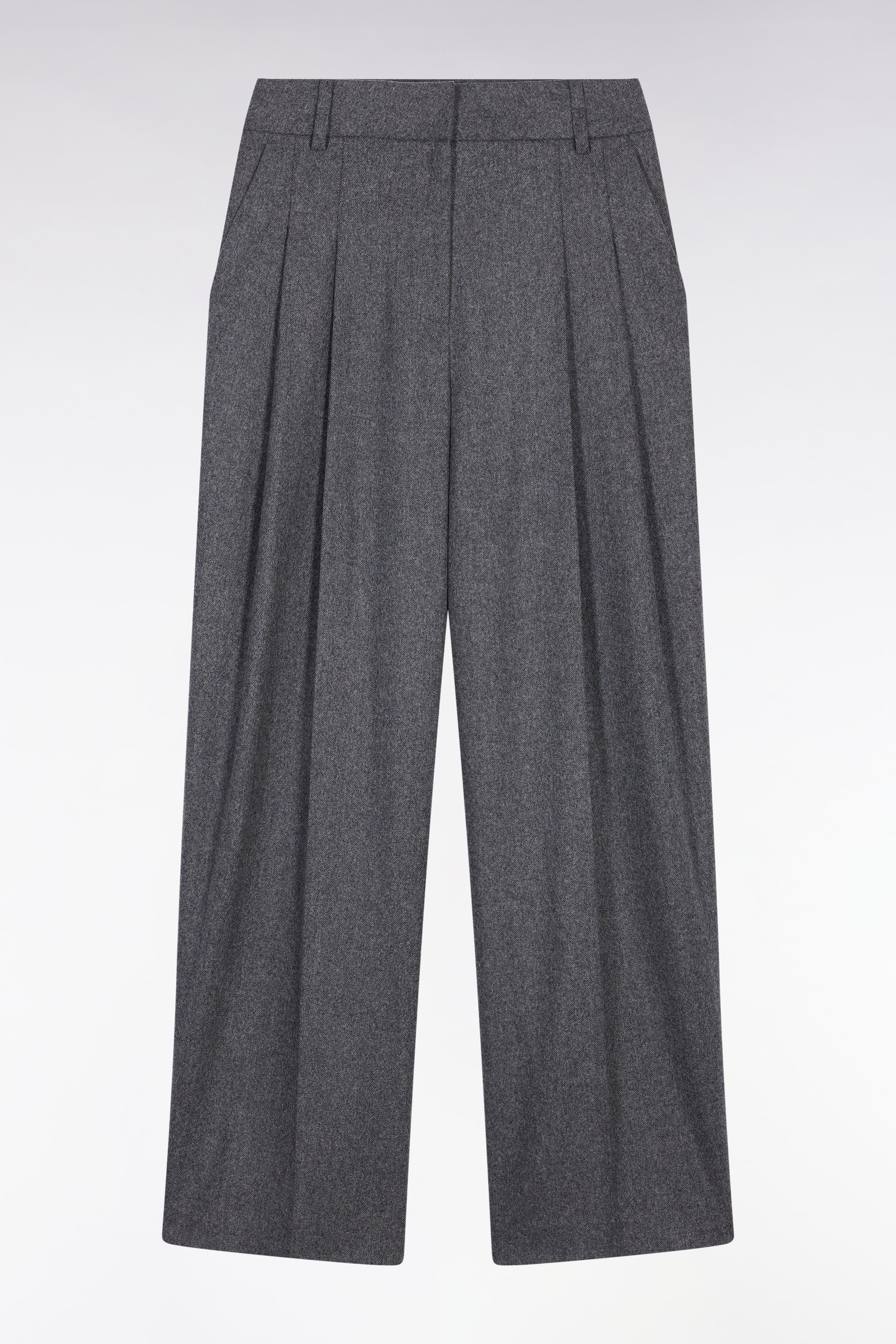 Pantalon de costume à jambes larges en flanelle de laine gris