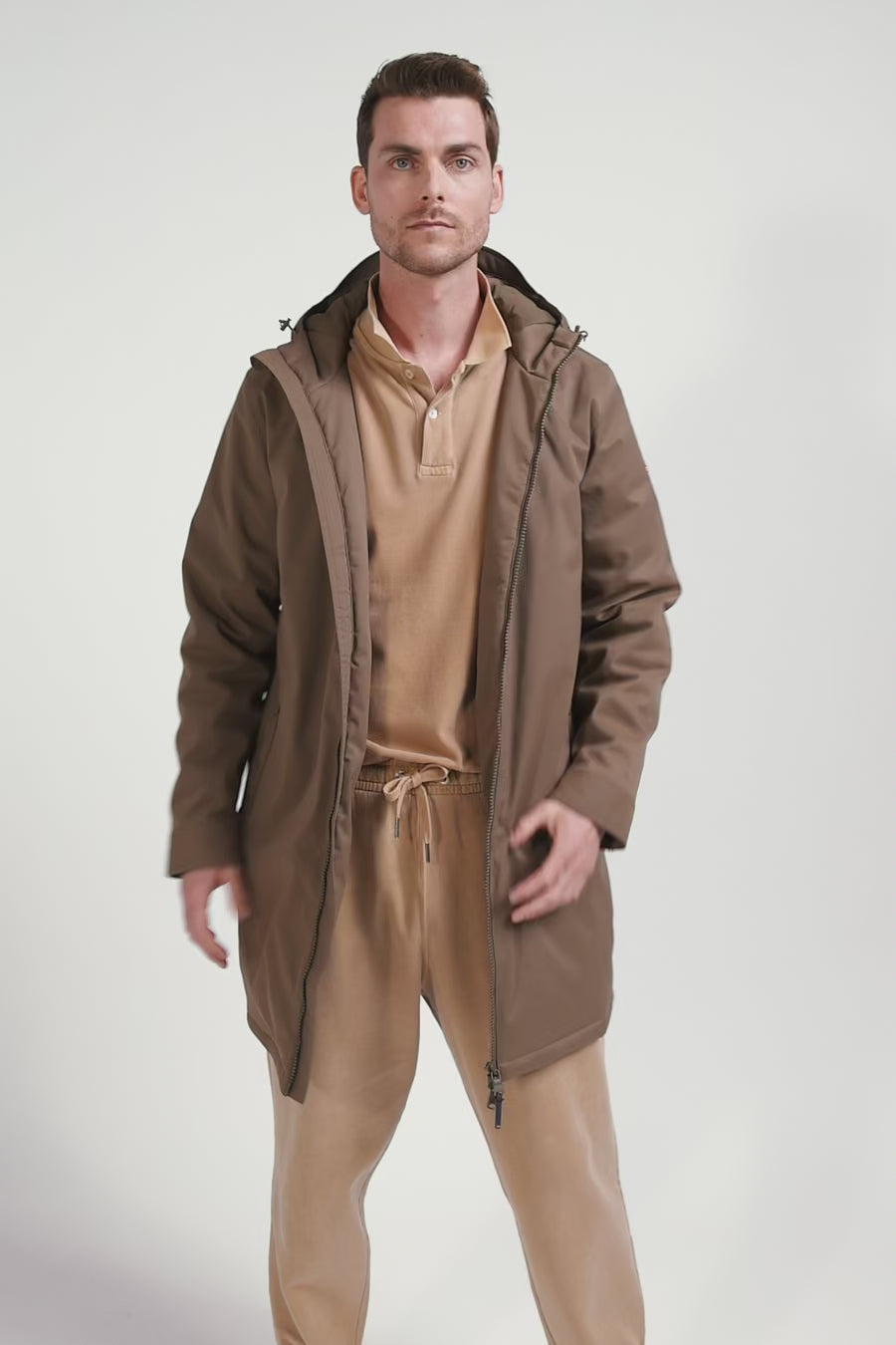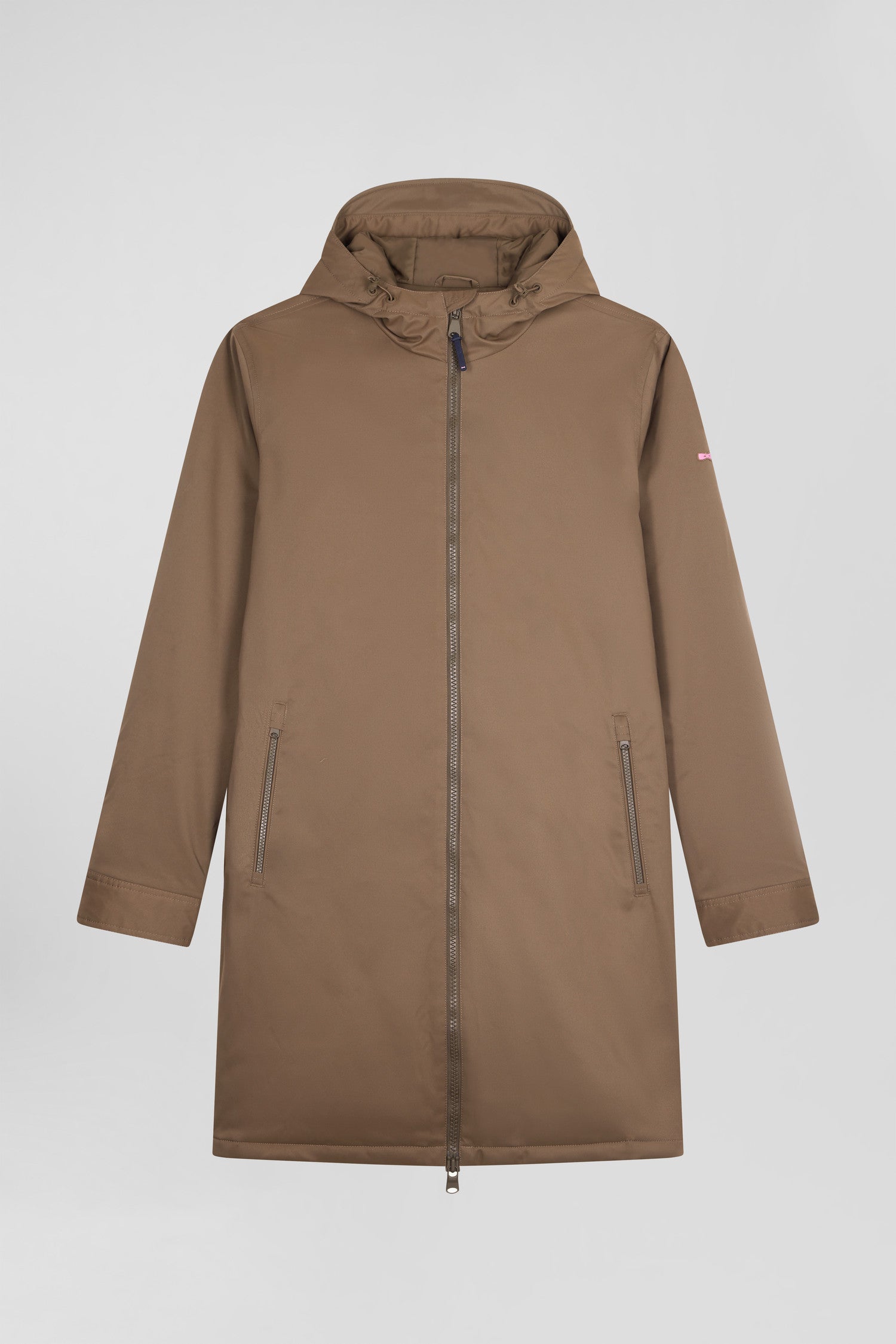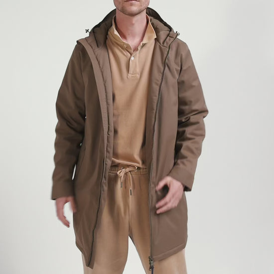 Parka longue à capuche en nylon marron