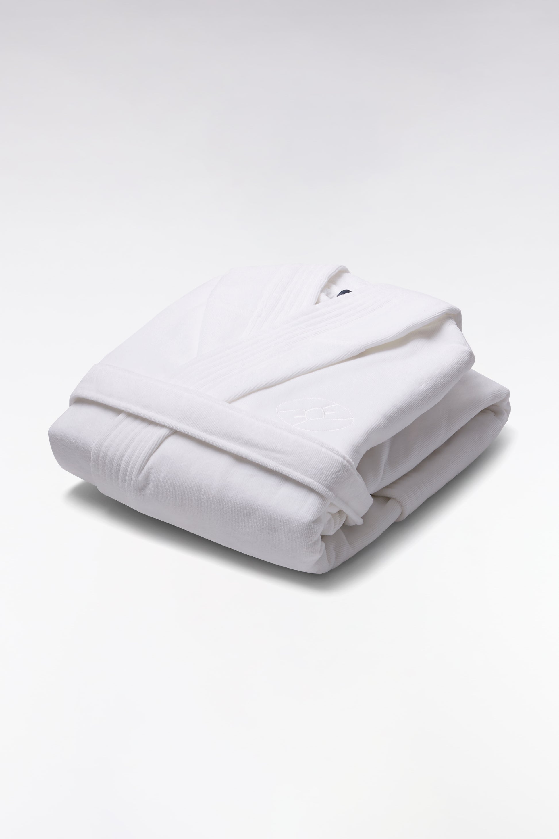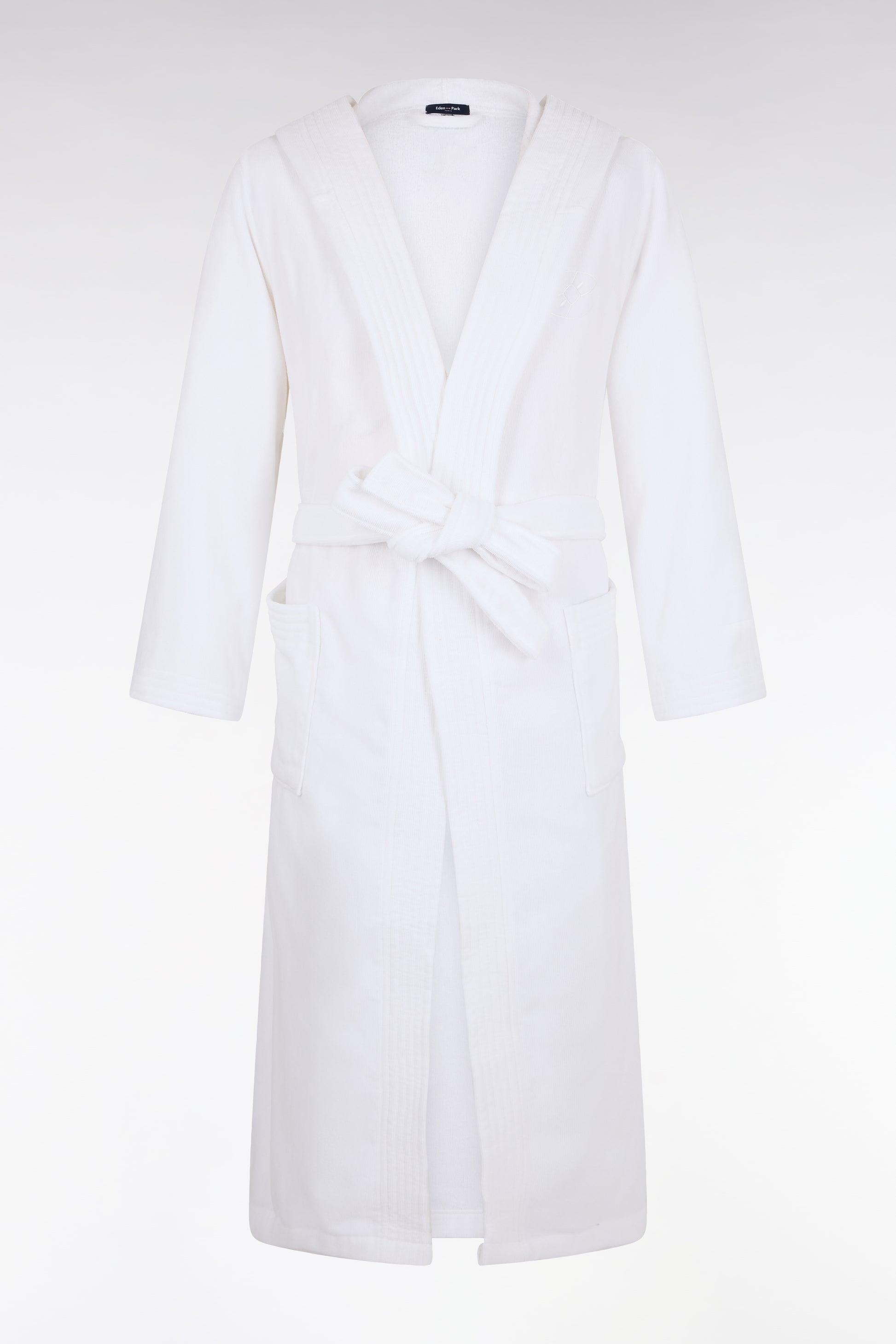 Pensé pour conjuguer douceur et allure dans vos moments de détente, ce peignoir mixte en éponge de coton mélangé se distingue par son passepoil contrasté qui souligne élégamment l’ouverture et les poches. Avec sa capuche enveloppante, ses finitions impeccables et sa coupe unisexe, il accompagne chaque moment de relaxation avec chic
