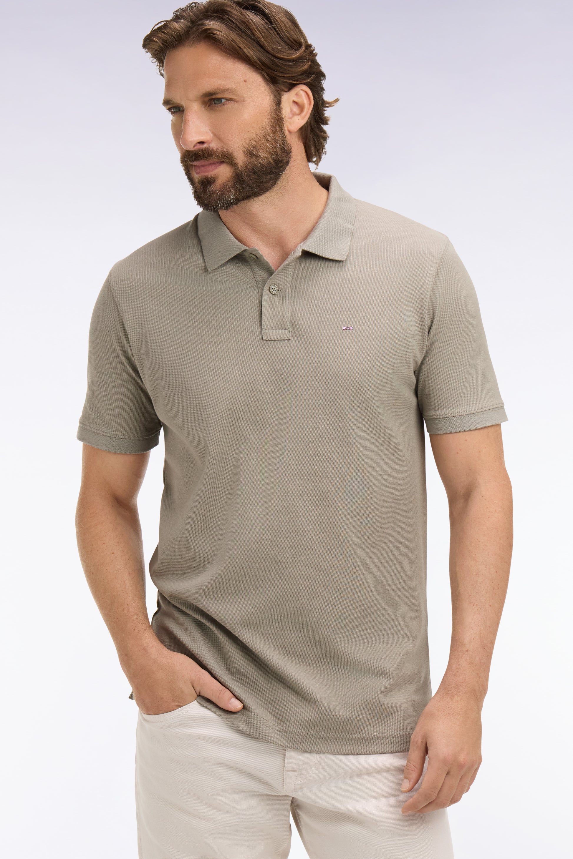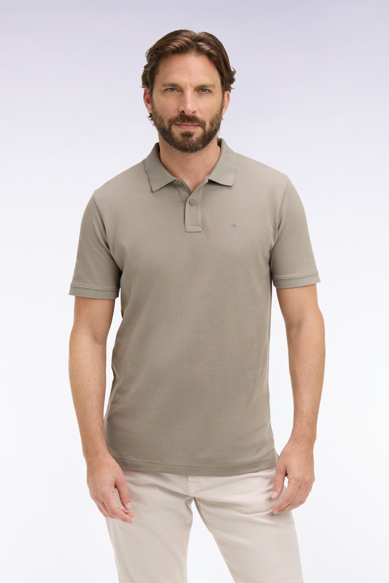Polo à manches courtes en coton kaki coupe regular