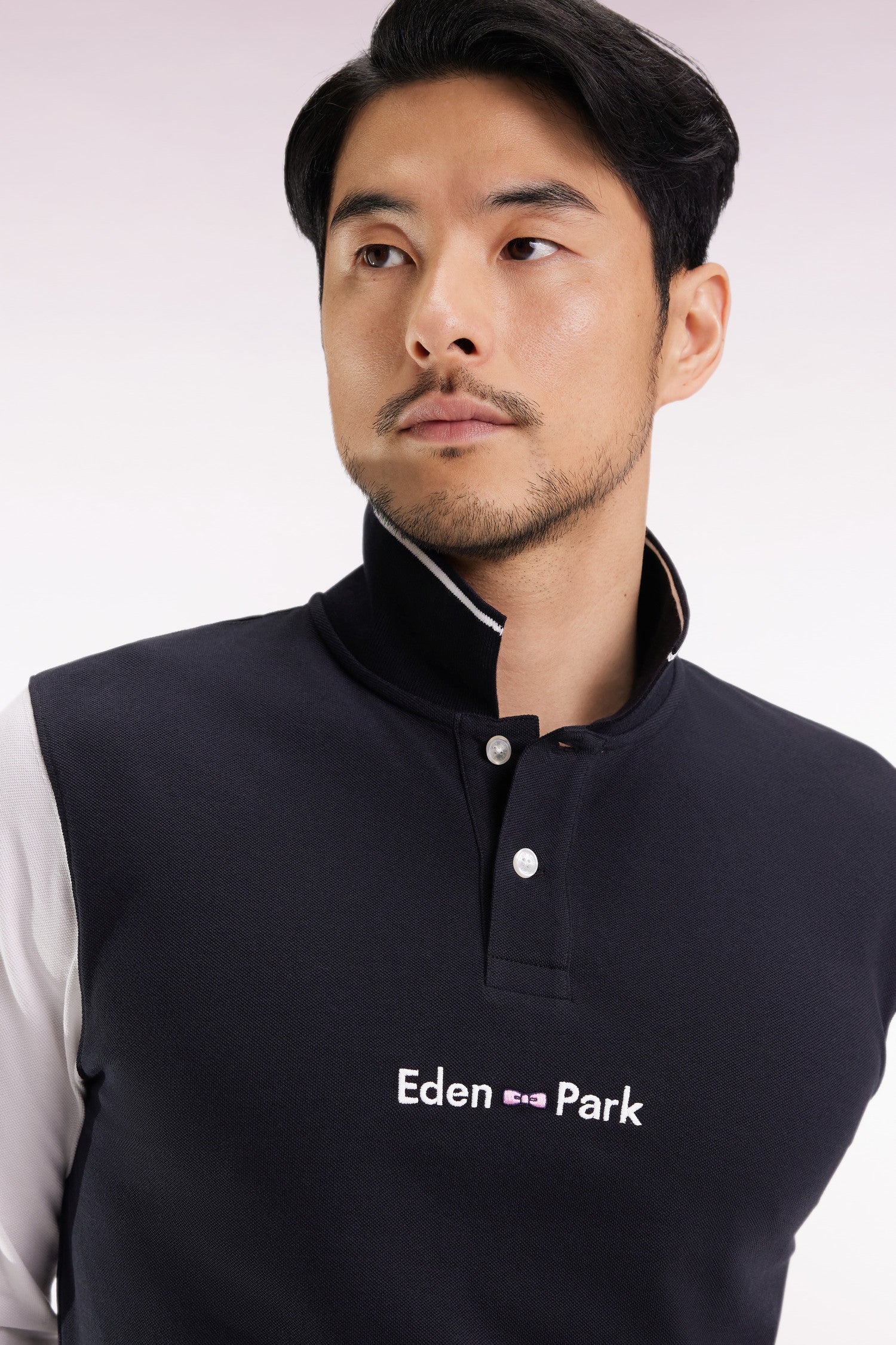 Polo à manches longues en piqué coton bicolore blanc logo Eden Park