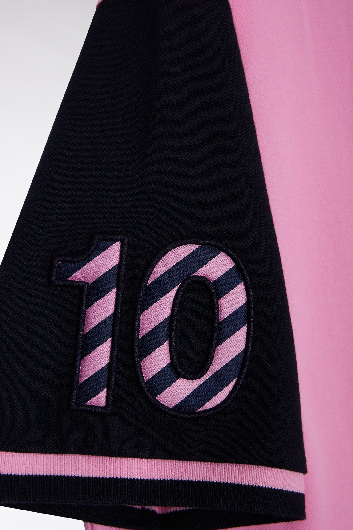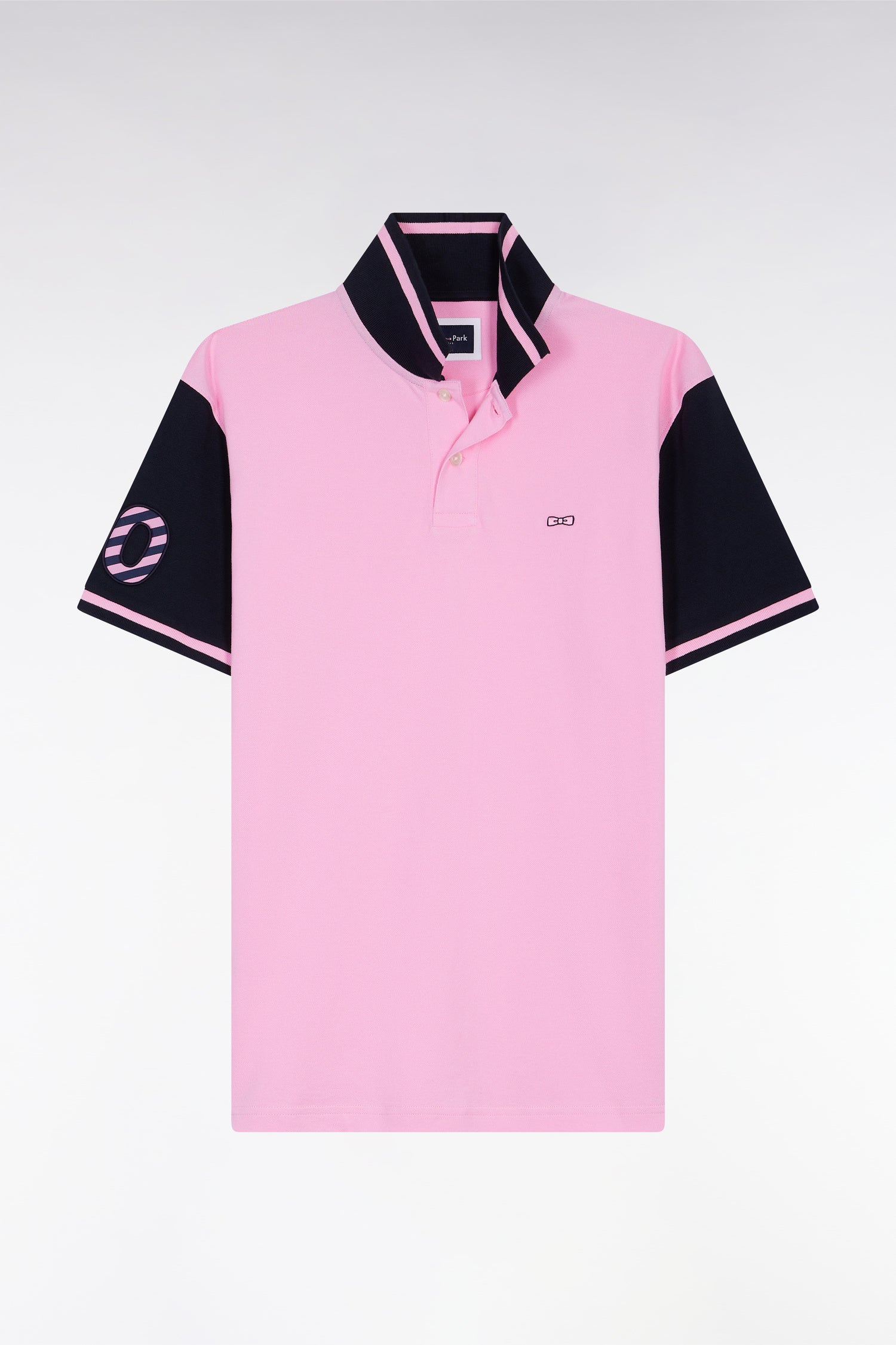 Réalisé en coton rose au col et manches bleu marine ou dans une version écrue et noire, ce polo homme à manches courtes arbore une rayure contrastée sur ses finitions bords-côtes et une broderie N°10 sur la manche réalisée à l'aide de tissu cravate rayé. Ce numéro, rappel du maillot porté par le fondateur d'Eden Park en équipe nationale, s'avèrera un porte-bonheur redoutable pour ne jamais rester sur le banc de touche du style. Léger et confortable, ce polo vous accompagnera en toutes saisons