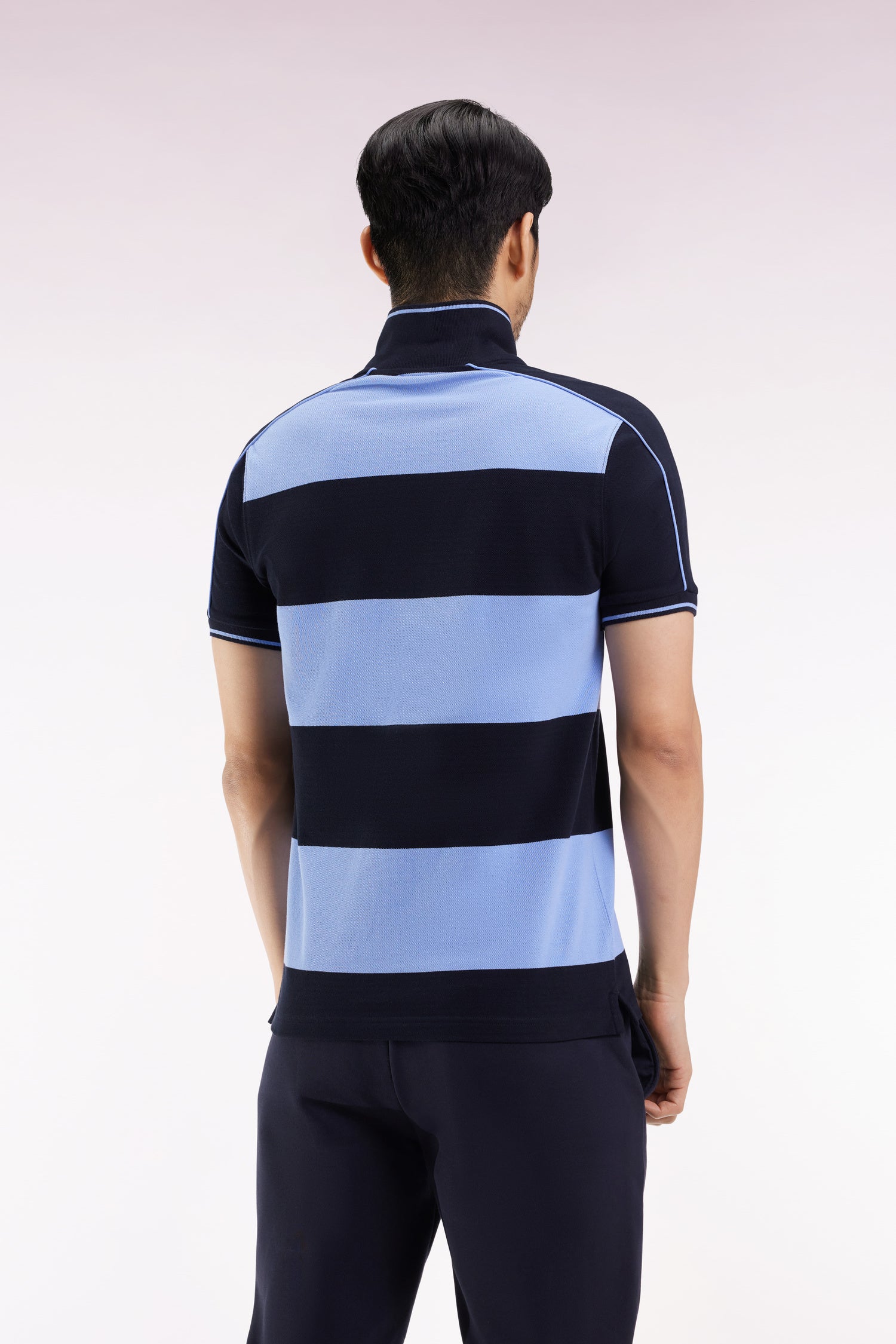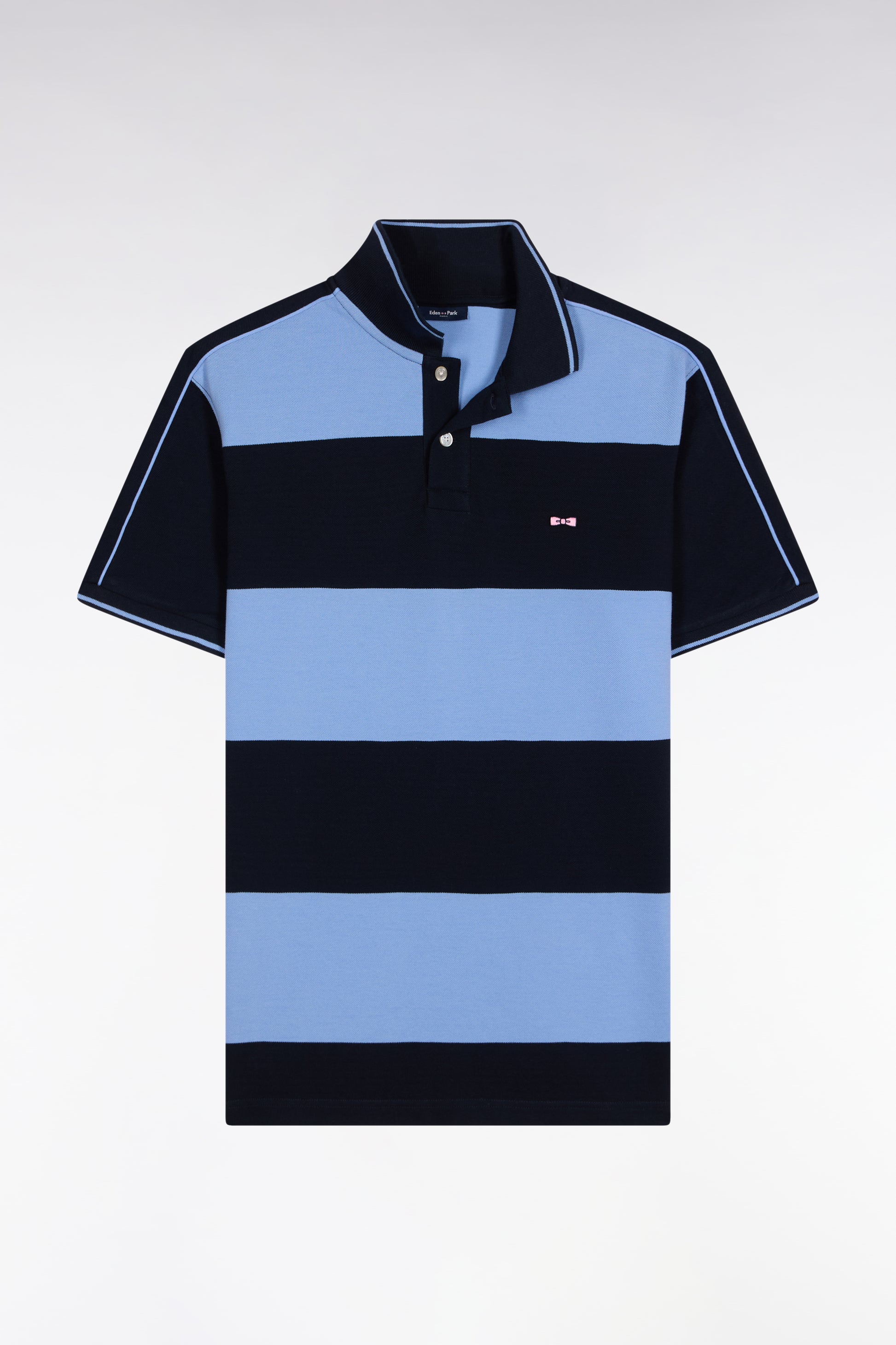 Polo cerclé en piqué coton à manches courtes en coton bleu