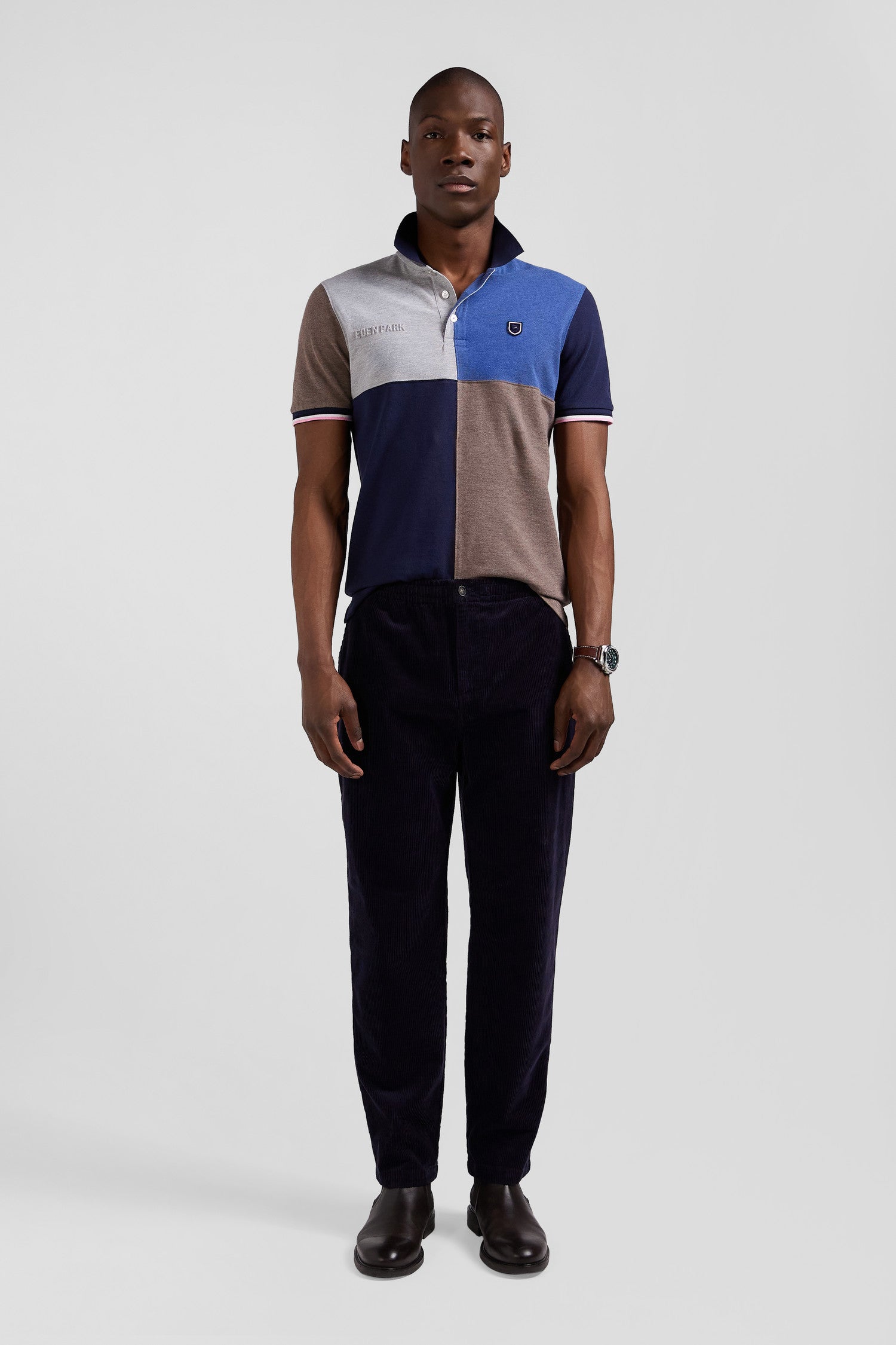 Polo manches courtes coupé-cousu en piqué coton bleu foncé coupe Regular
