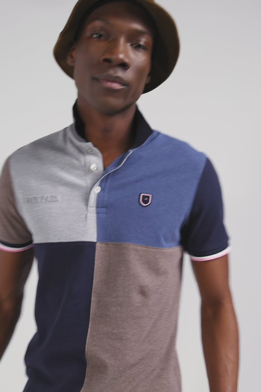 Notre polo coupé-cousu à manches courtes, où quatre coloris se marient en un jeu de cadrans sophistiqué, est une pièce forte du vestiaire masculin. Disponible en bleu clair et bleu foncé chiné, ce polo homme en piqué coton confortable offre une touche dynamique et moderne à votre silhouette. Conçu pour ceux qui désirent allier caractère et confort, ce polo est parfait pour un look à la fois décontracté et distinctif.