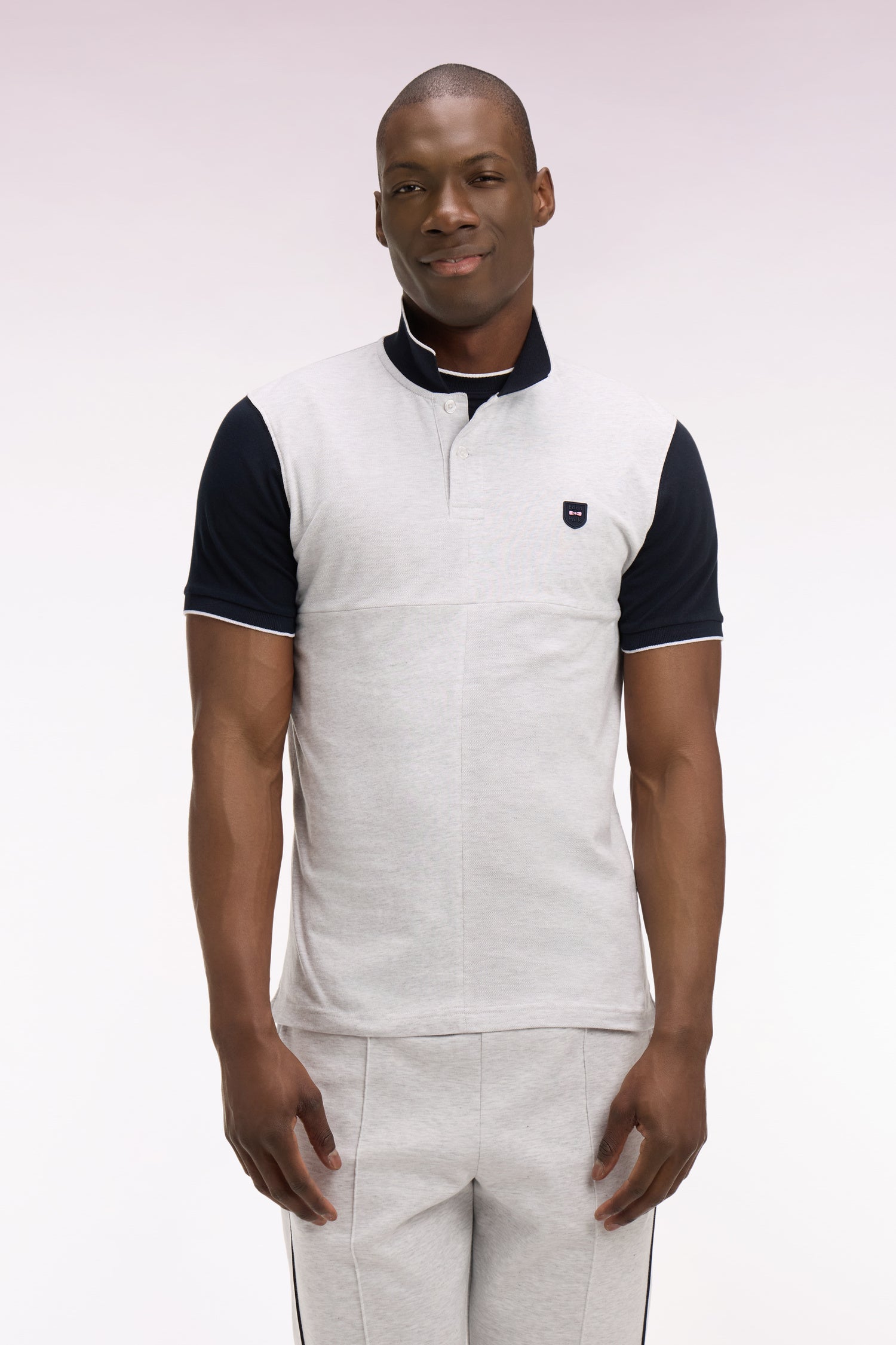 Polo manches courtes bicolore en coton gris clair à découpes coupe regular