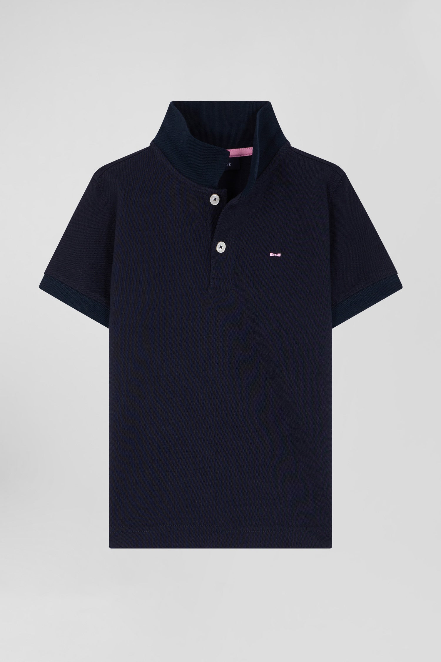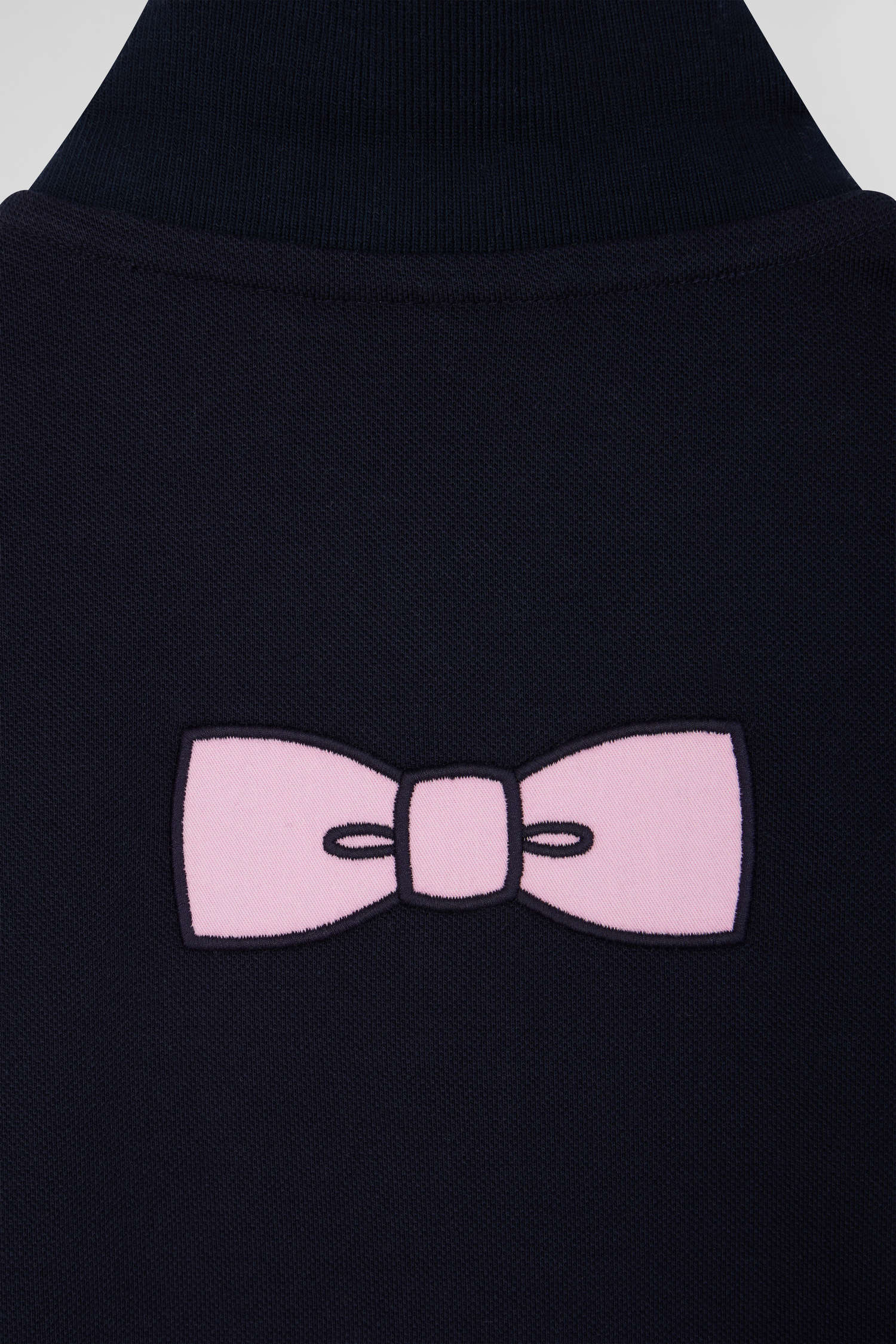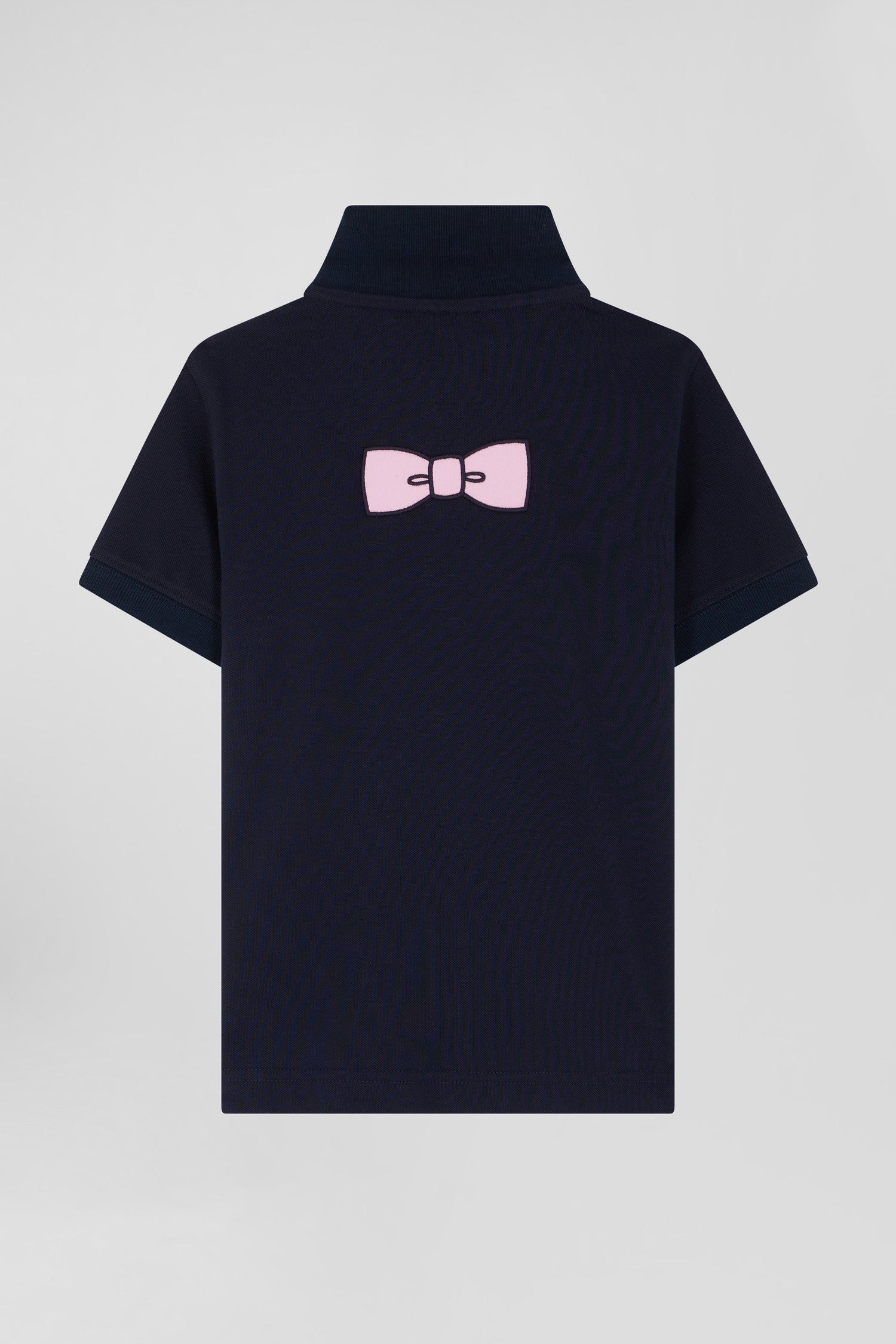 Polo manches courtes en piqué coton bleu marine broderie nœud papillon dos coupe Regular