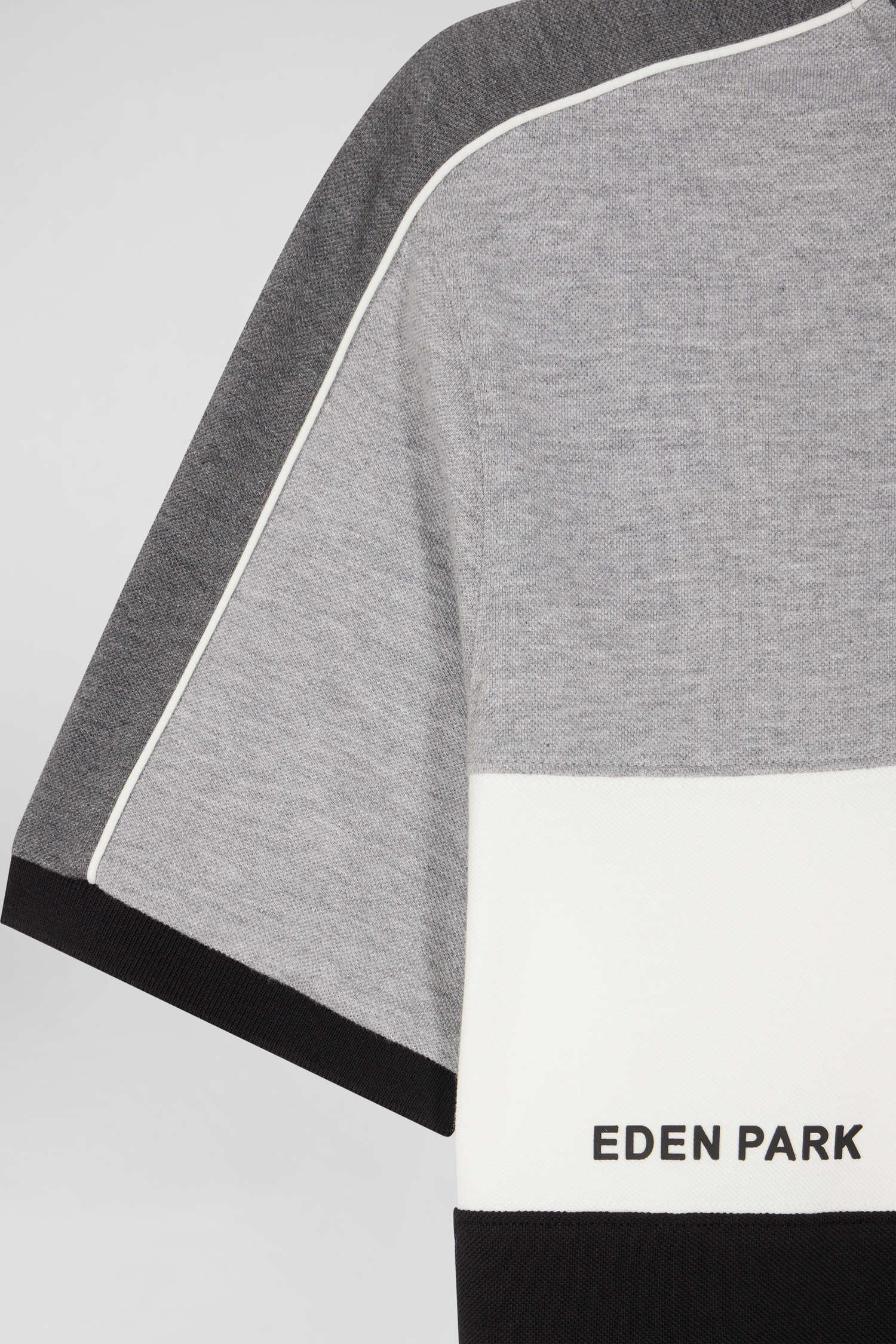 Polo manches courtes tricolore en piqué coton noir inscription Eden Park coupe Regular