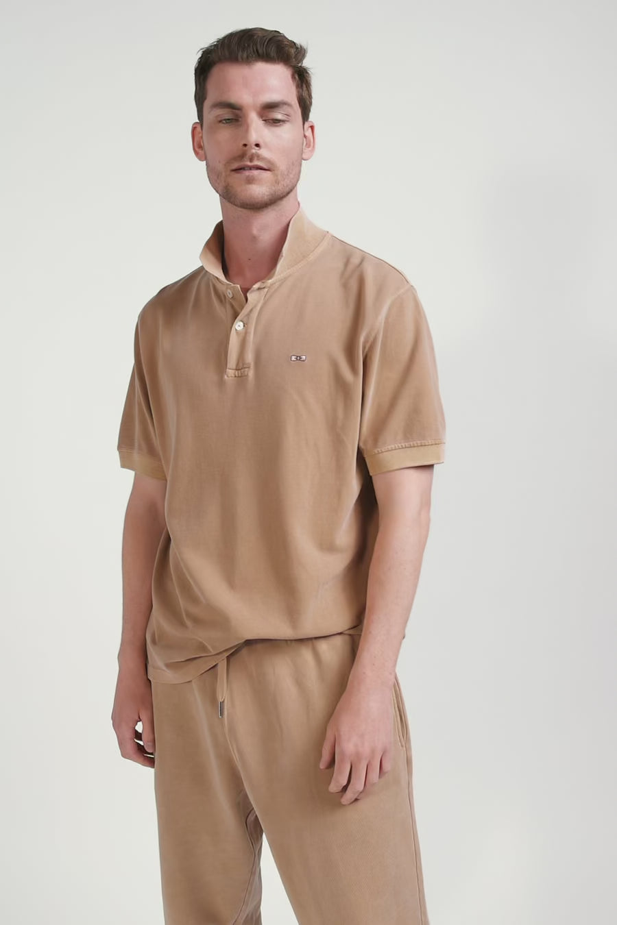 Polo manches courtes unisexe en piqué coton noisette surteint coupe Oversized