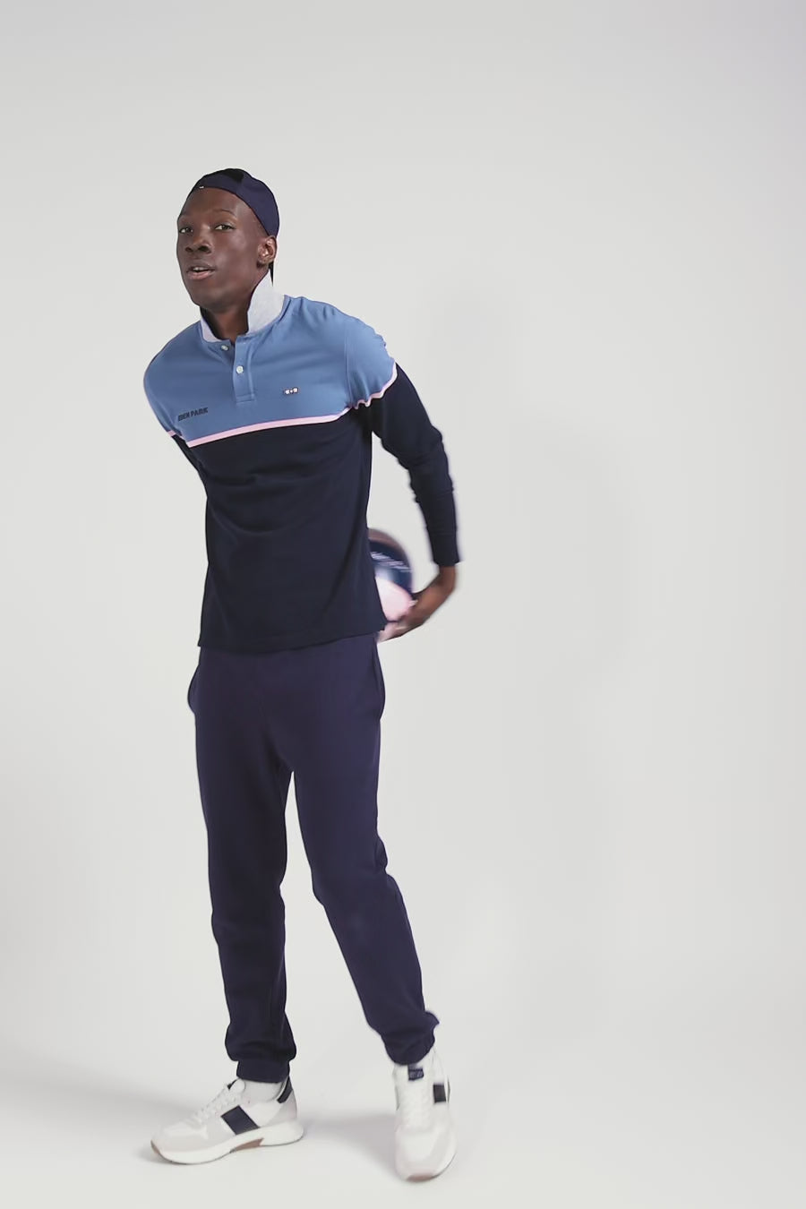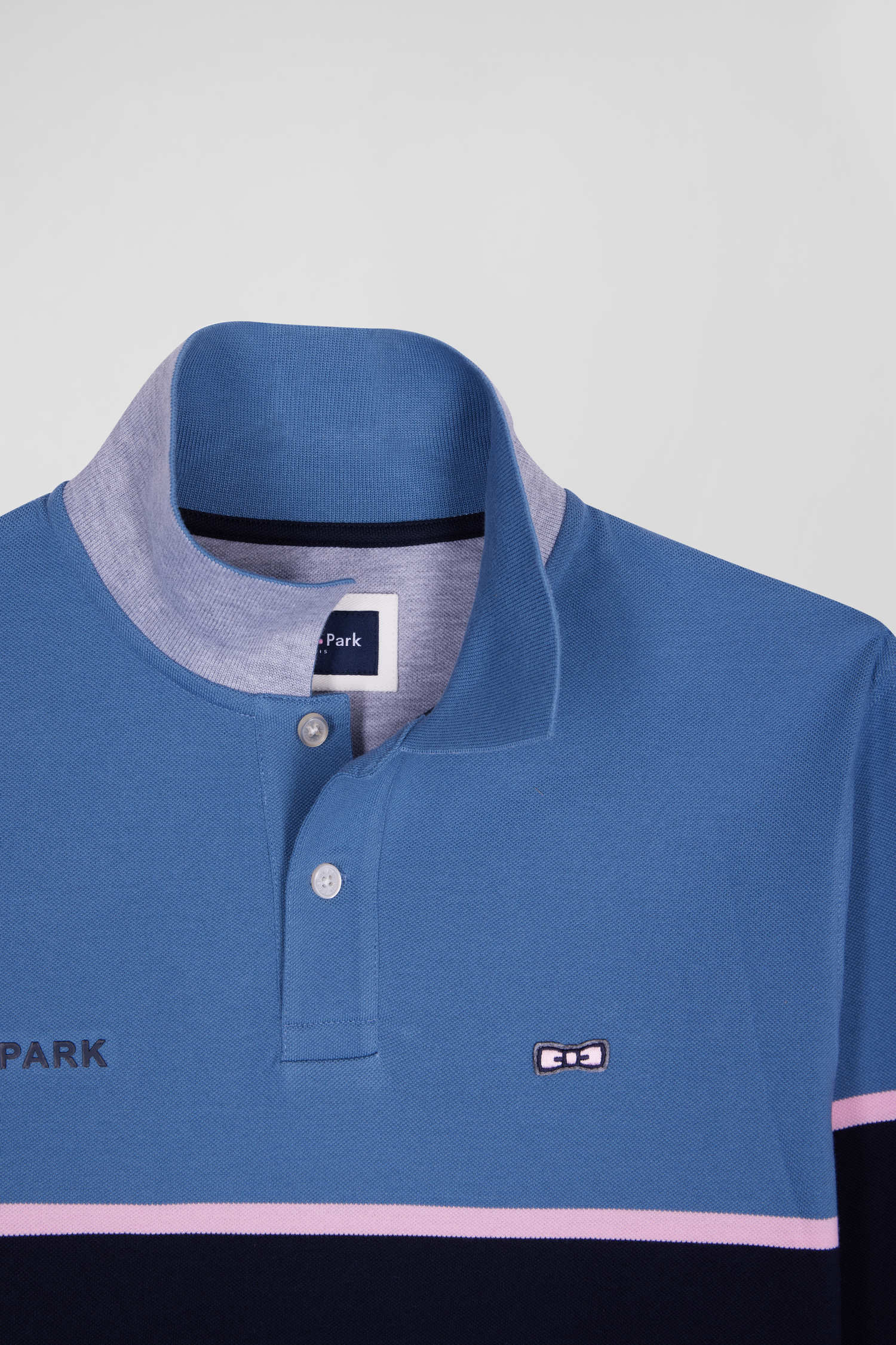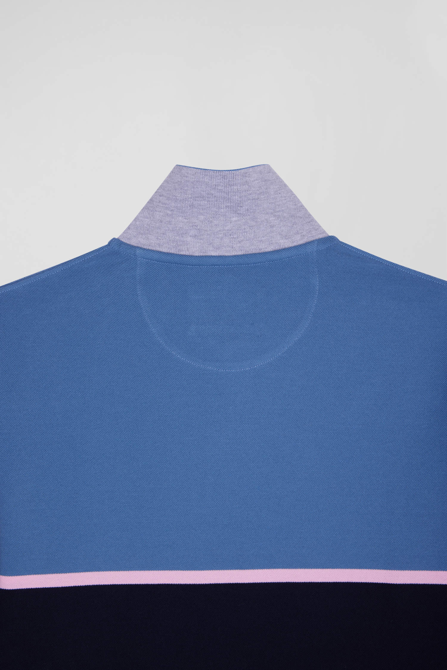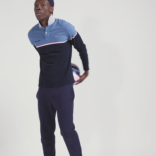 Polo manches longues bicolore en piqué coton bleu coupe Regular