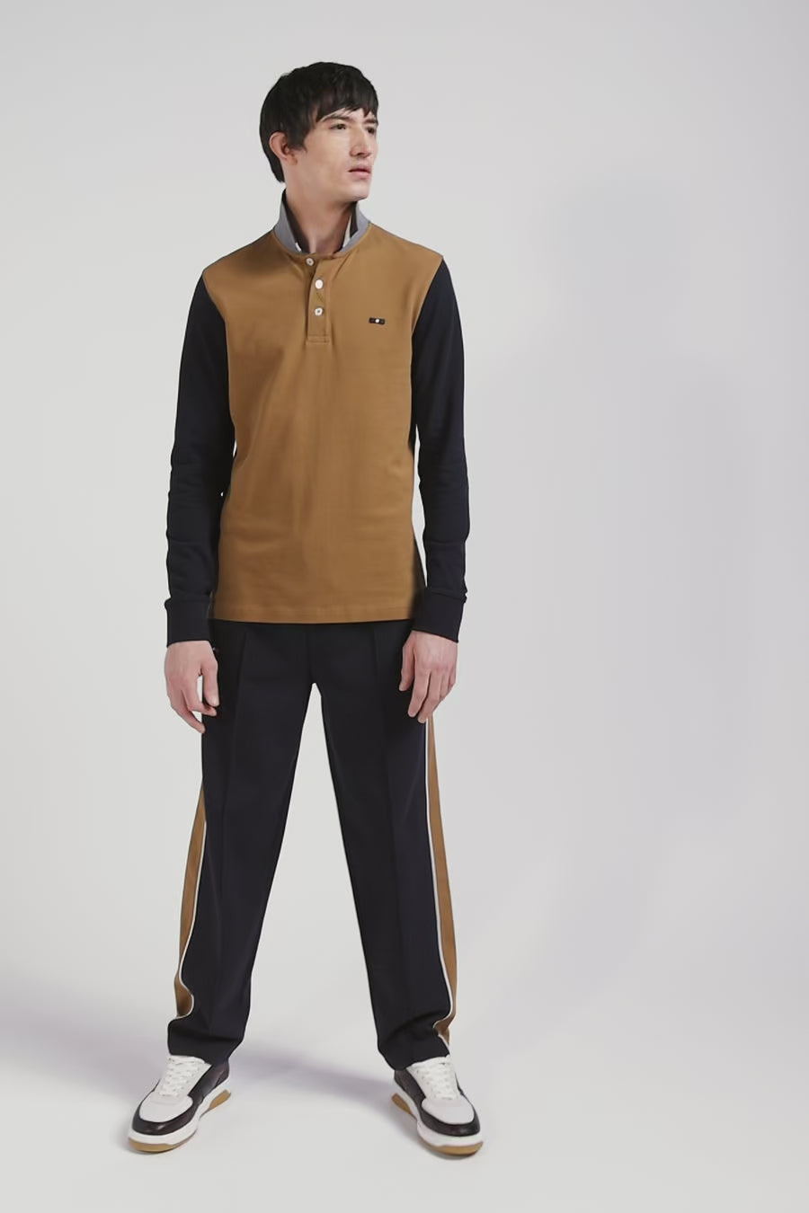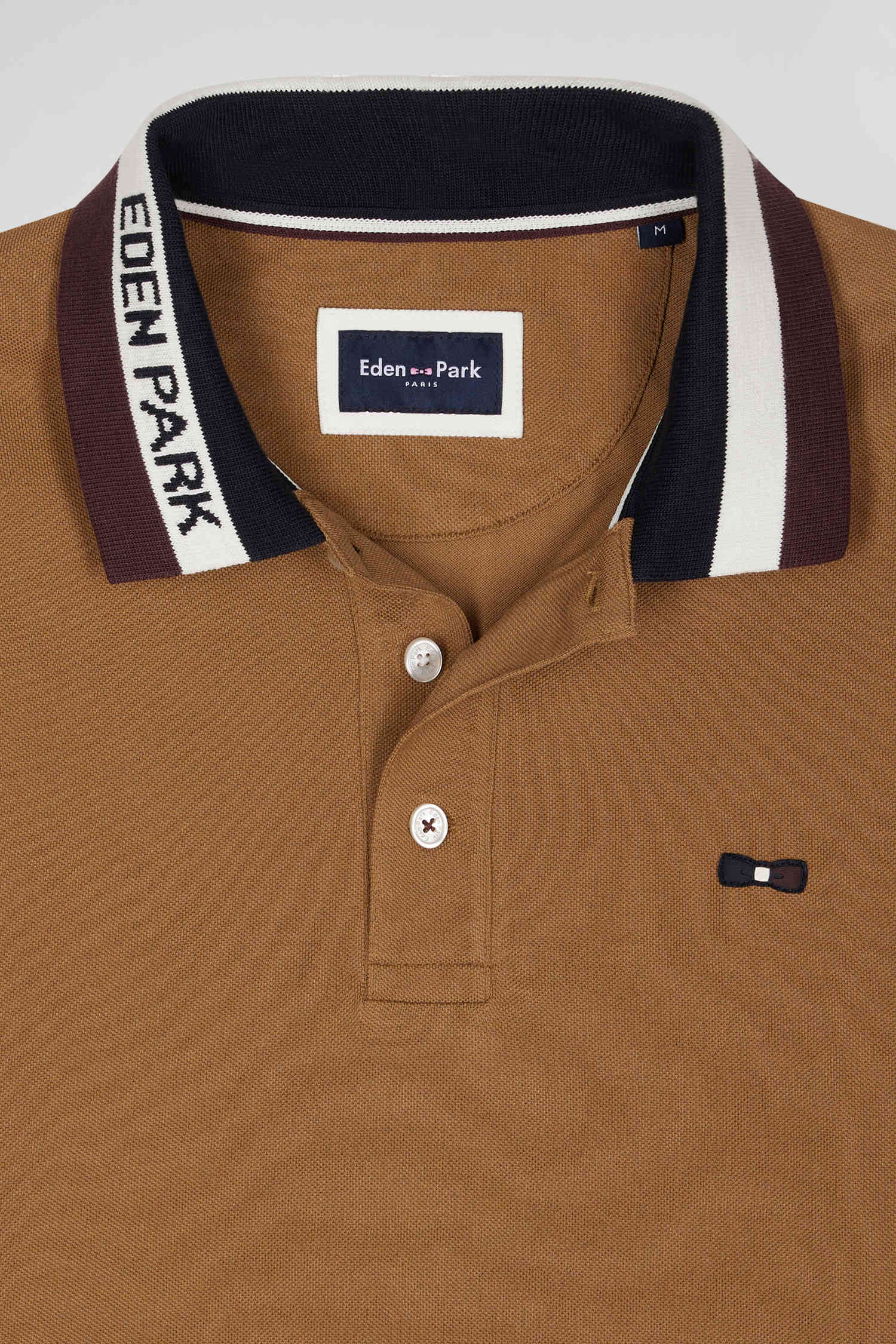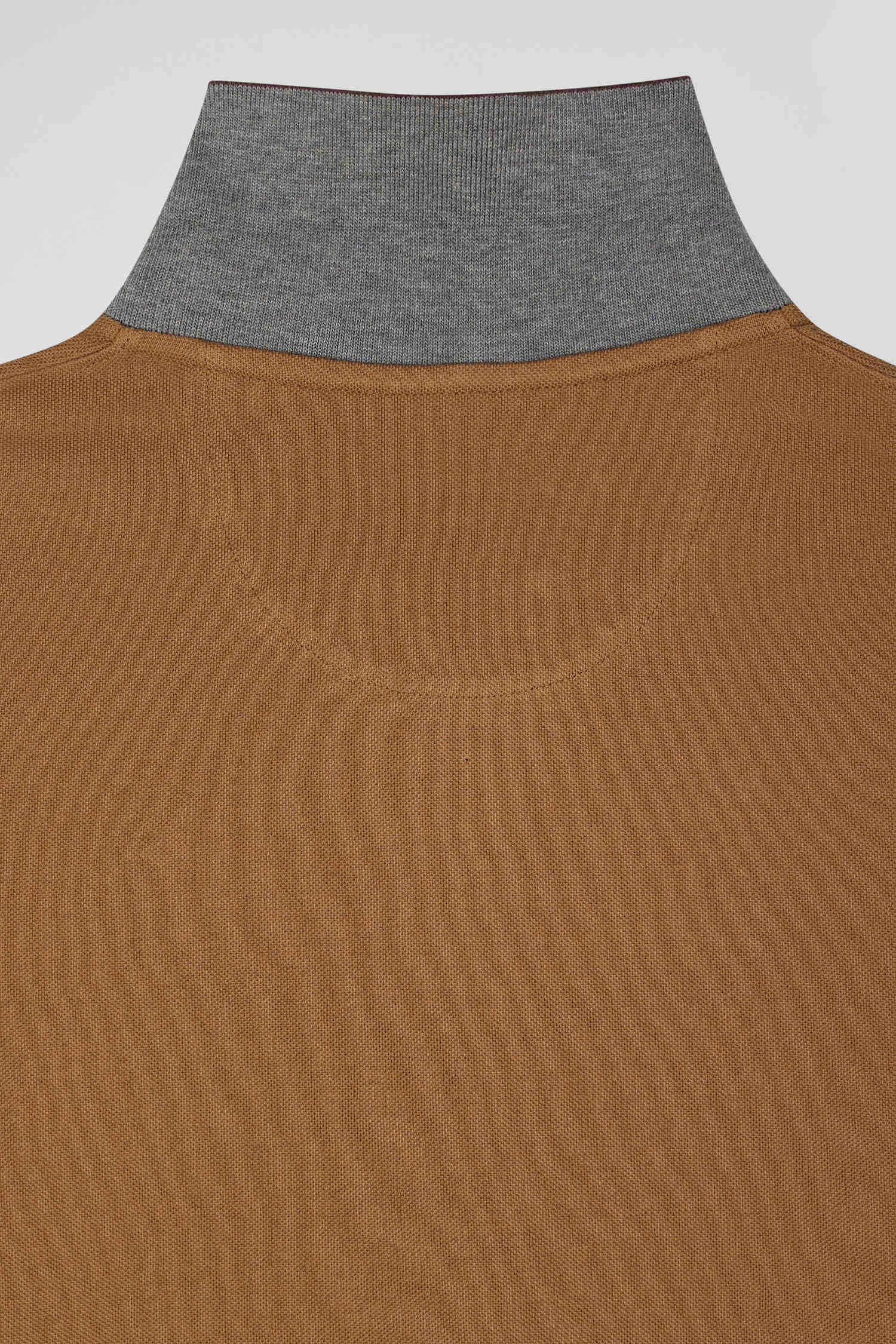 Polo manches longues en piqué coton bicolore noisette col jacquard coupe Regular