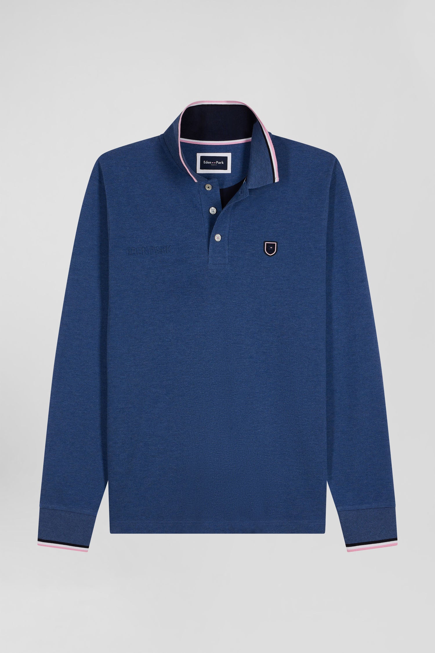 Complétez votre collection de pièces emblématiques de l'esprit Eden Park avec ce polo homme à manches longues en piqué de coton, parfait pour chaque instant. Son allure moderne est rehaussée par un écusson en silicone distinctif et un col élégant à bordure tricolore, incarnant l'essence du chic sportif.