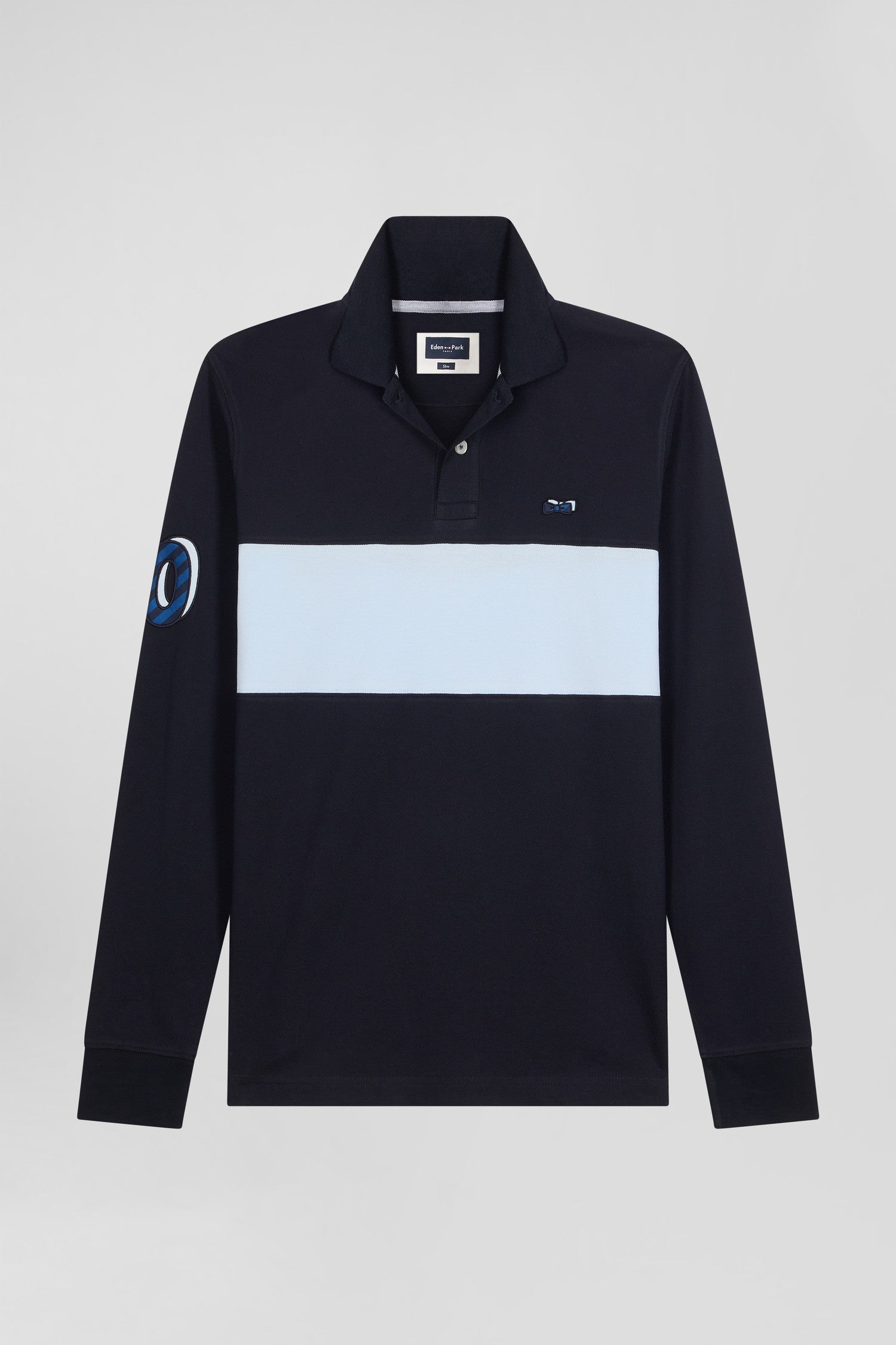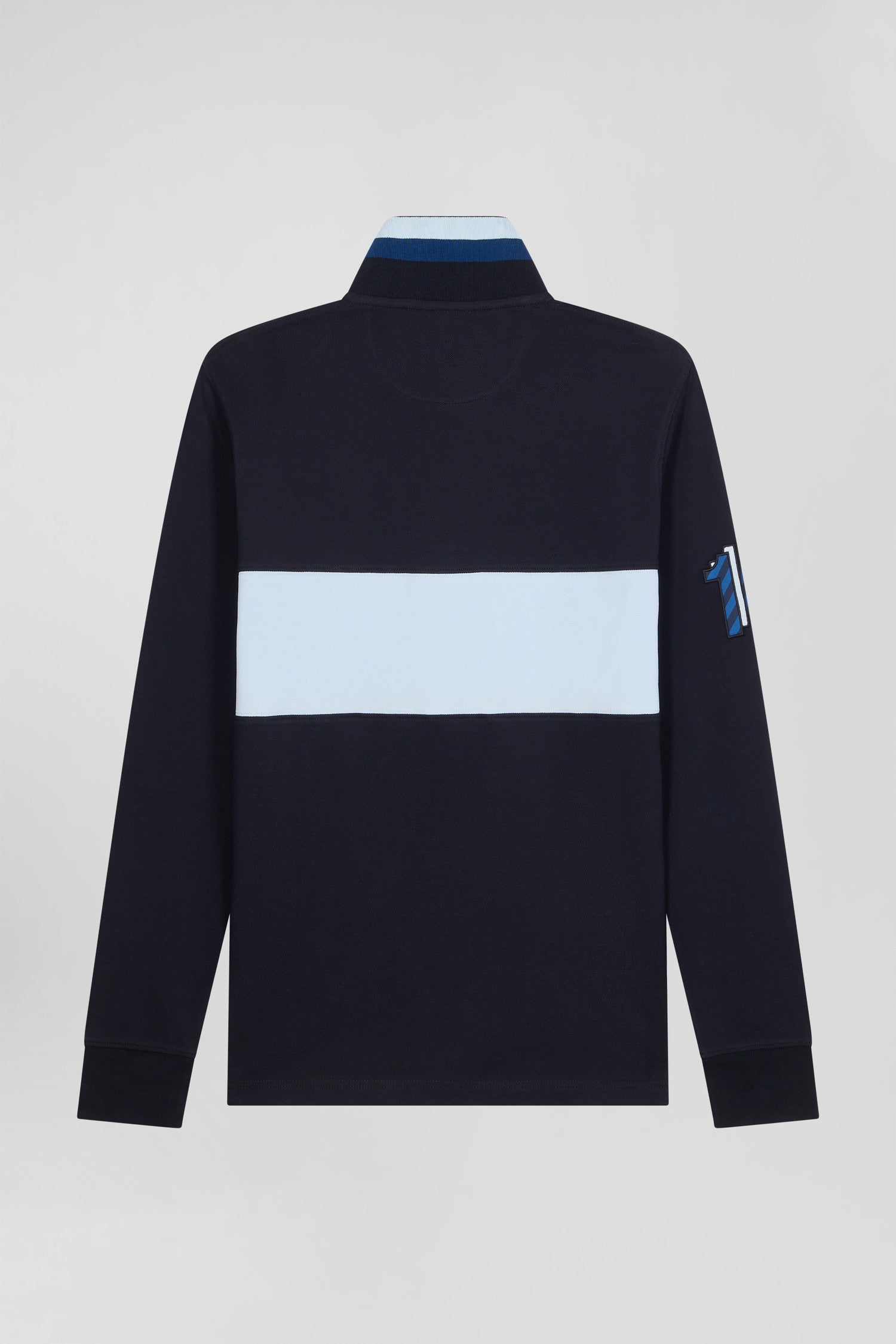 Polo manches longues en piqué coton ciel broderie 10 manche coupe Regular