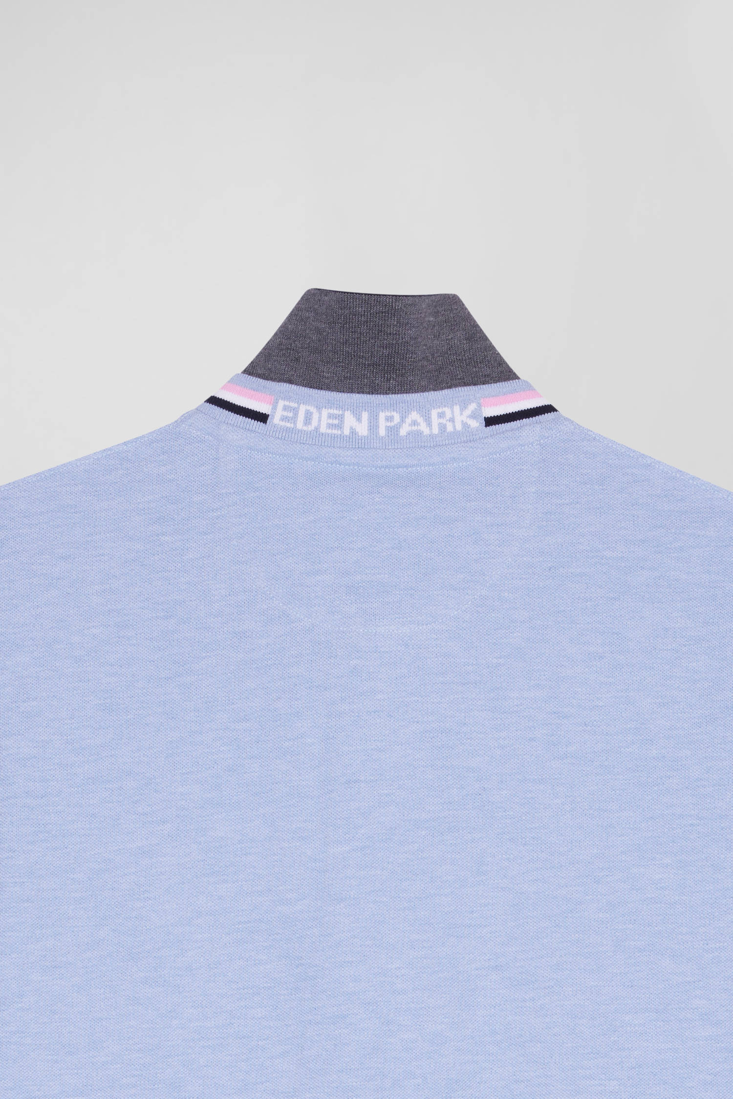 Polo manches longues en piqué coton ciel écusson gomme coupe Regular