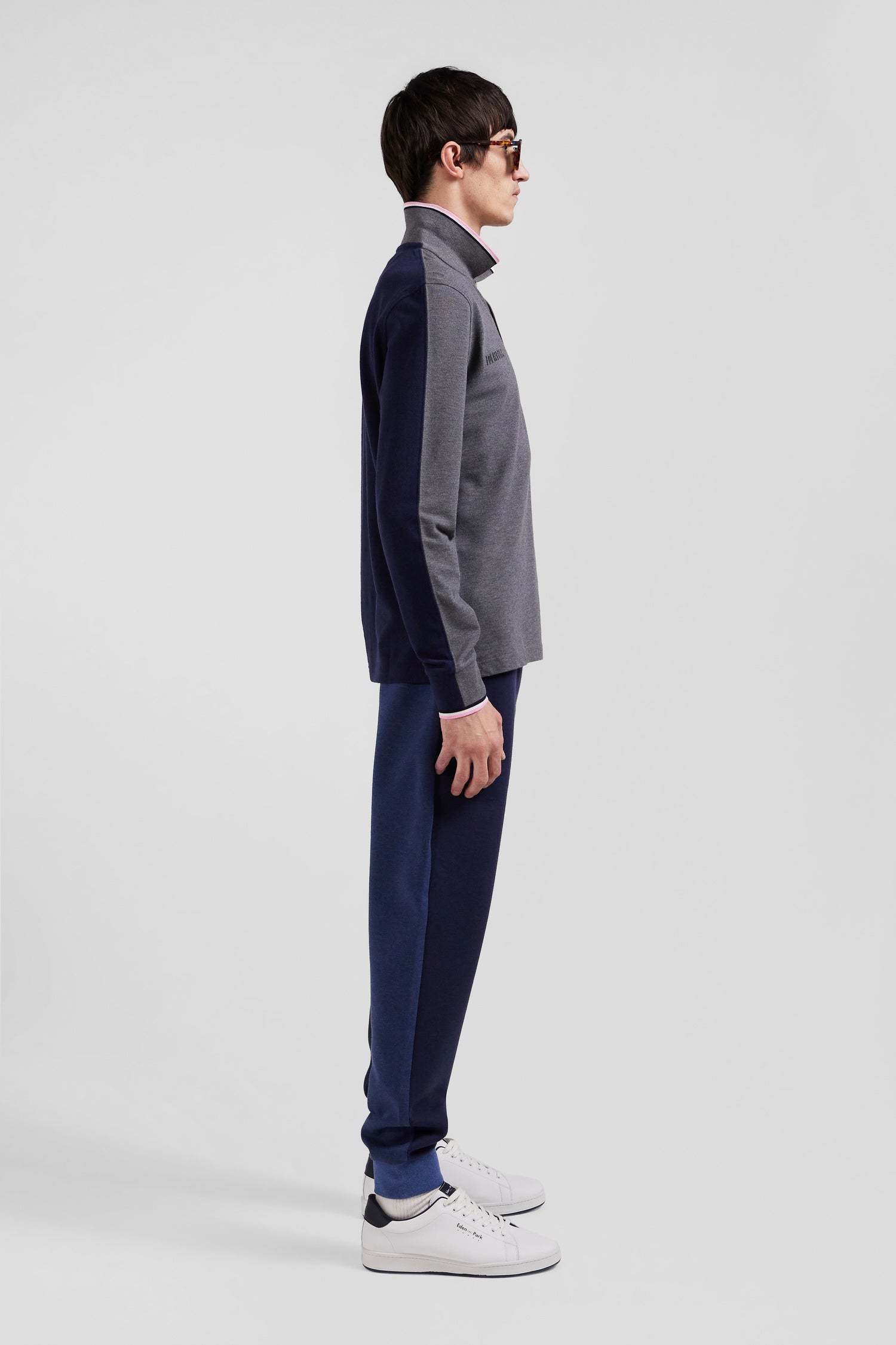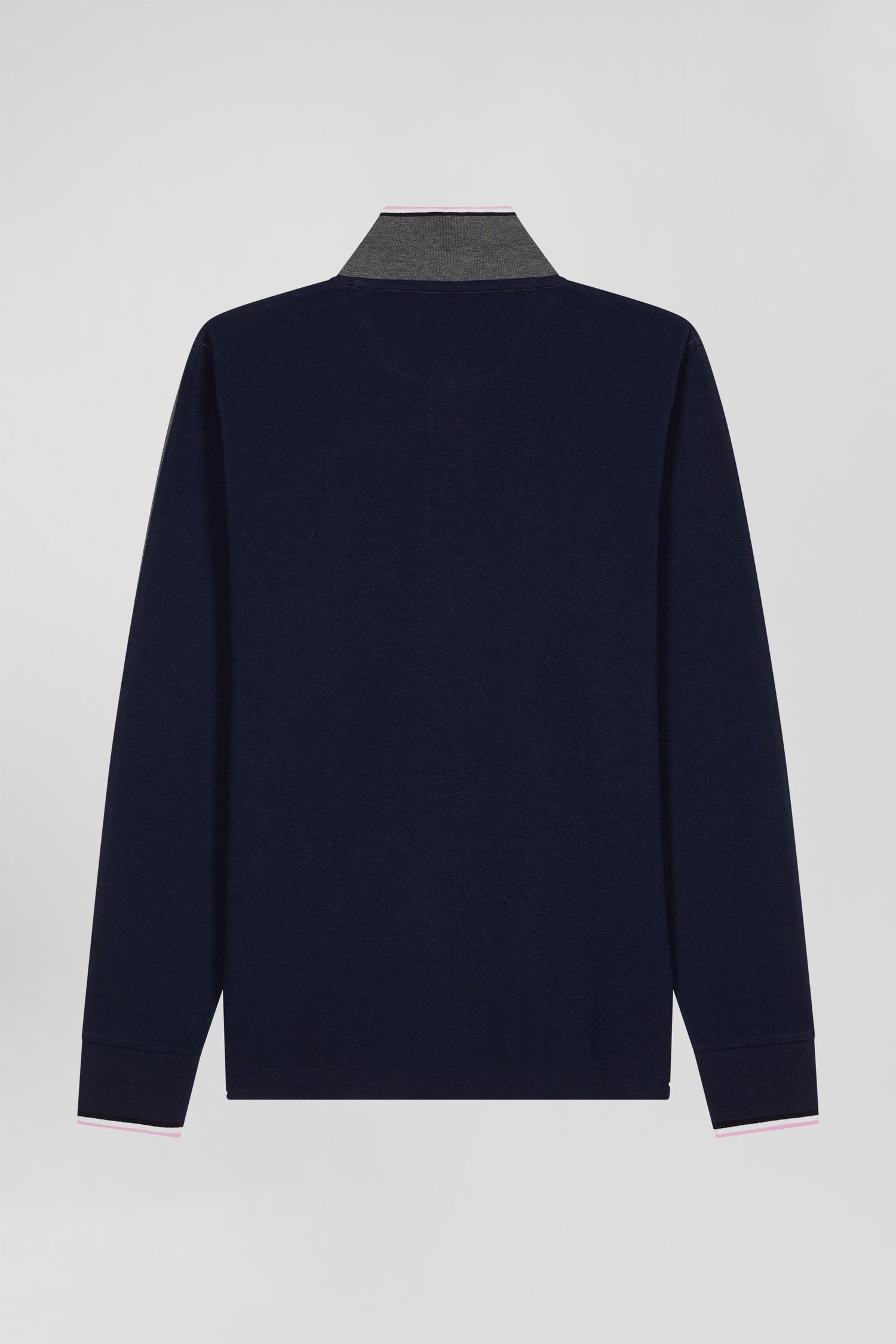 Polo manches longues en piqué coton gris détails tricolores coupe Regular