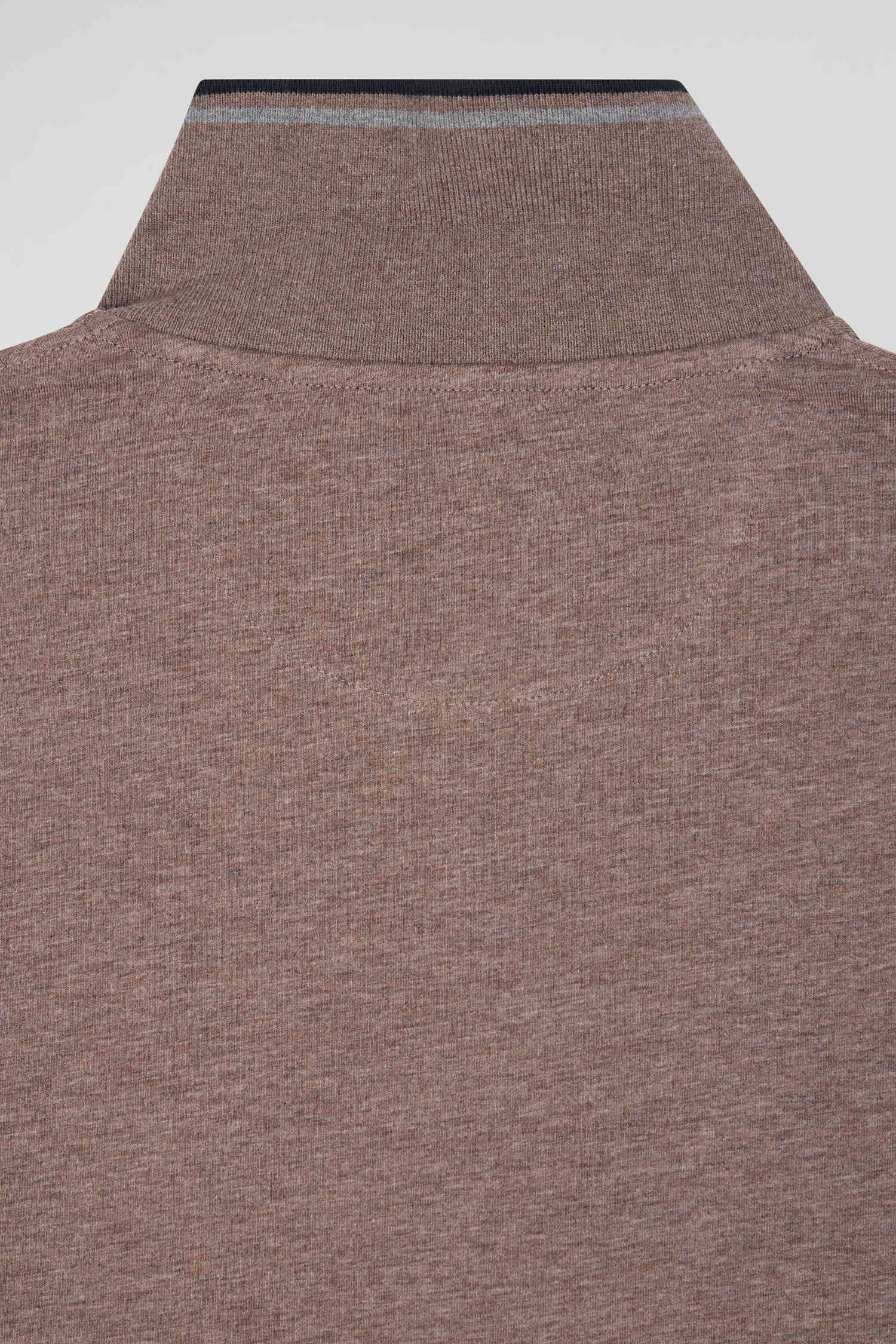Polo manches longues marron en coton stretch finitions rayées