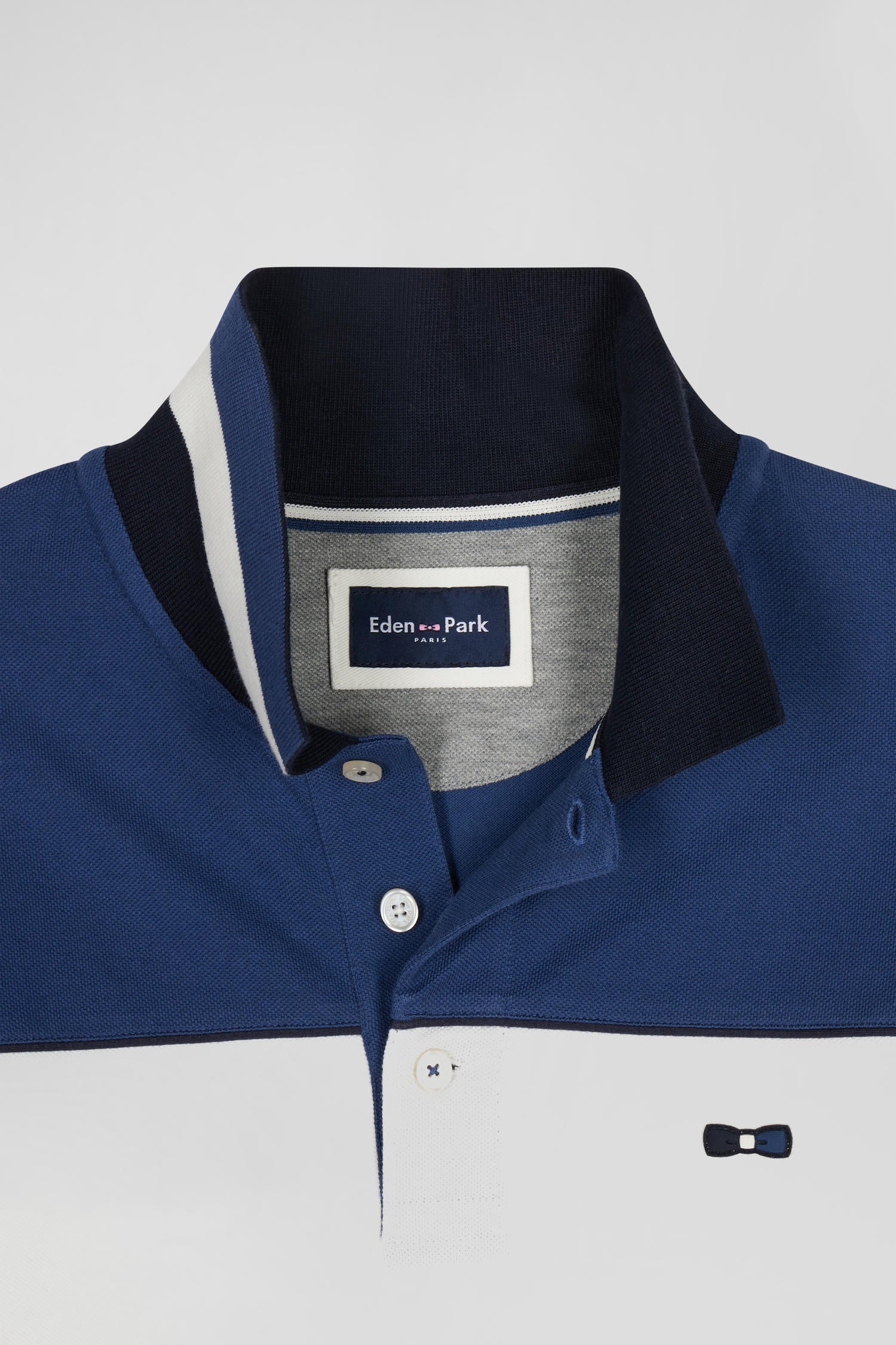 Polo manches longues tricolore en piqué coton bleu coupe Regular