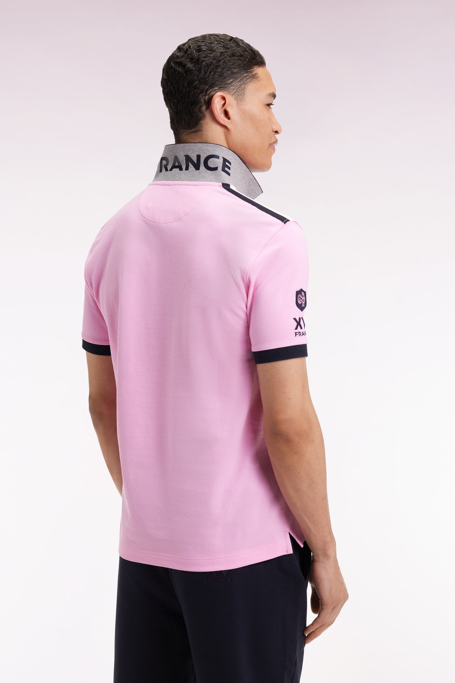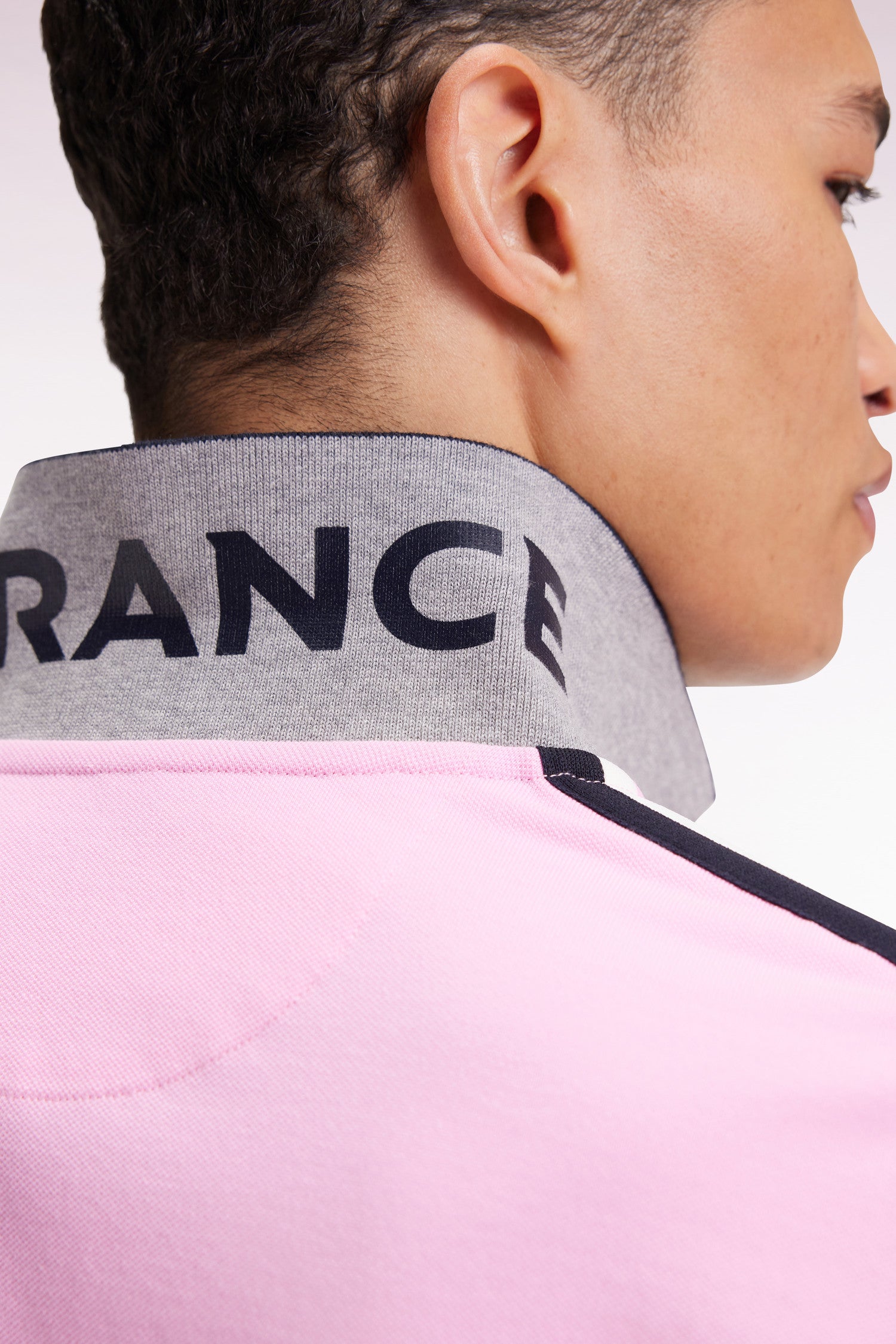 Ce polo à manches courtes incarne l'esprit sportif d’Eden Park et du XV de France masculin avec ses rubans tricolores bleu ciel, blanc et rose brodés sur l'épaule qui dynamisent l'allure. Son dessous de col comporte l'inscription "France" permettant de subtilement signifier votre soutien à l'équipe nationale. Sur la poitrine, un badge silicone contraste subtilement avec le piqué de coton aussi doux que respirant. Une pièce emblématique du vestiaire rugby chic à forte personnalité jusqu'aux boutons tricolores reprenant la forme d'un ballon de rugby !