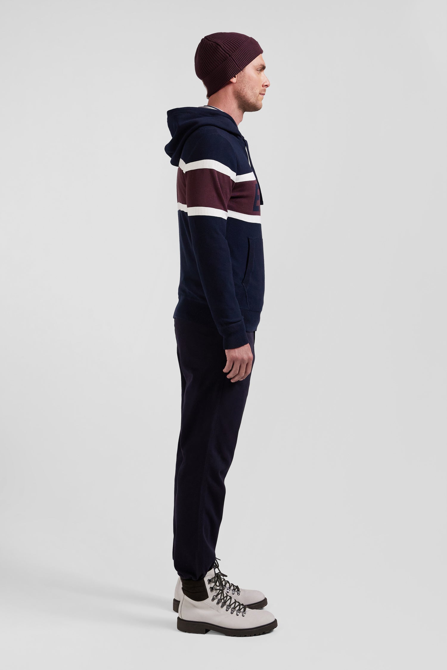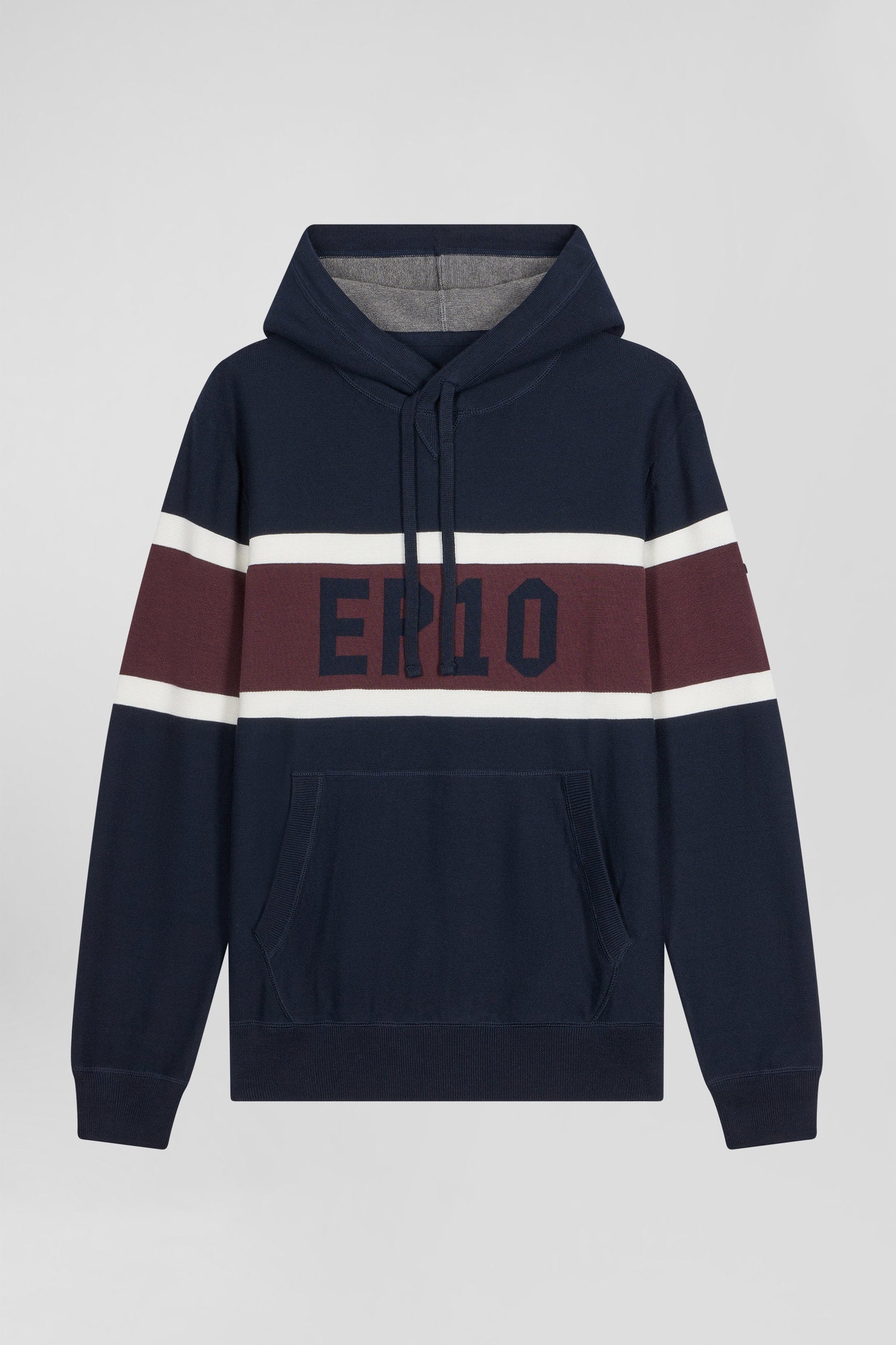 Pull à capuche en coton bleu marine jacquard EP10 coupe Regular