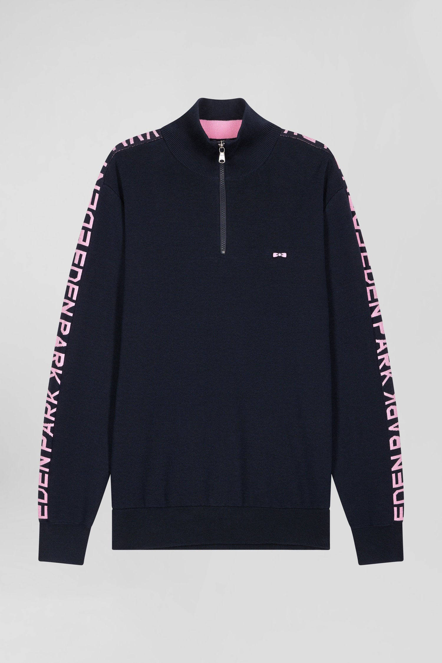 Avec son col camionneur zippé à l'intérieur rayé et sa bande jacquard au nom d'Eden Park le long des manches, ce pull homme promet une silhouette hivernale chic et athlétique. Ses bords-côtes tricotés assurent à ce pull en coton bleu marine une tenue impeccable.