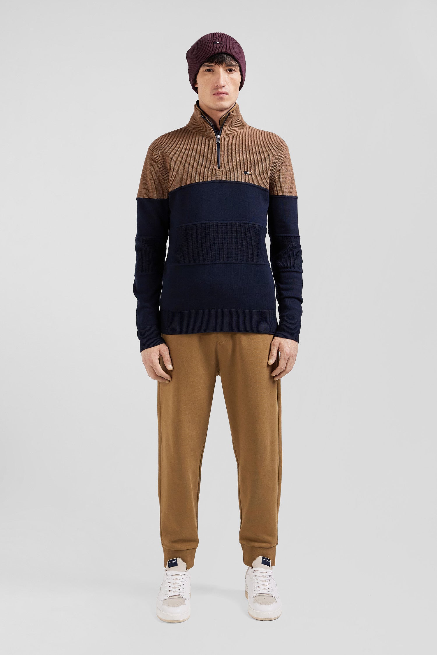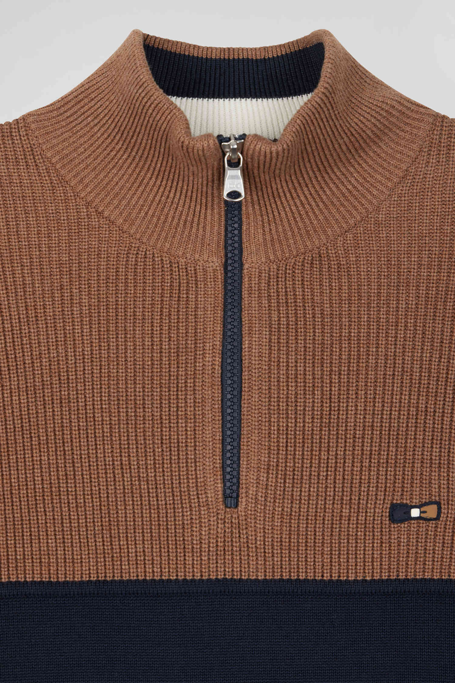 Pull col camionneur en coton noisette à jeux de maille coupe Regular