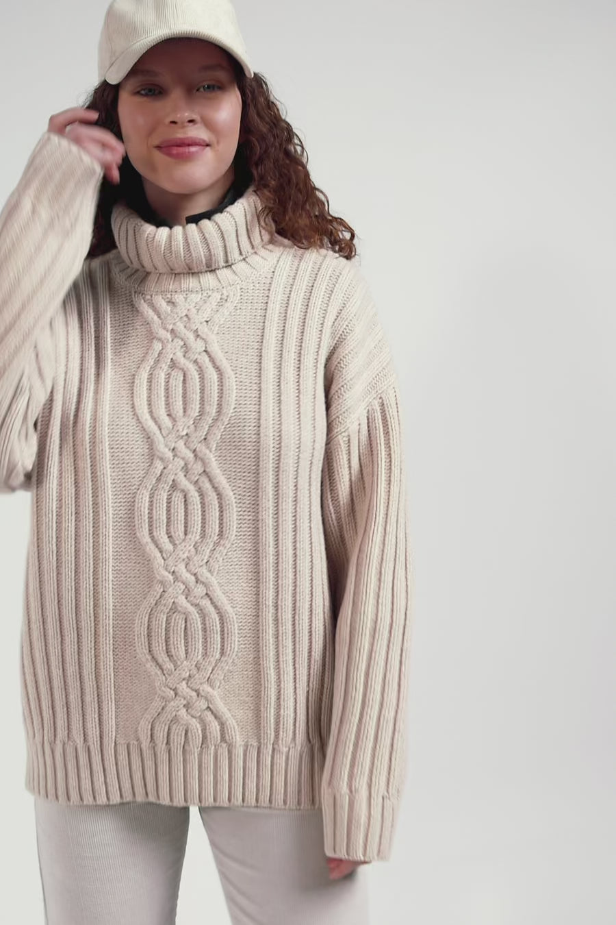 Pull col cheminée en laine mélangée effet nœud ivoire coupe Oversized