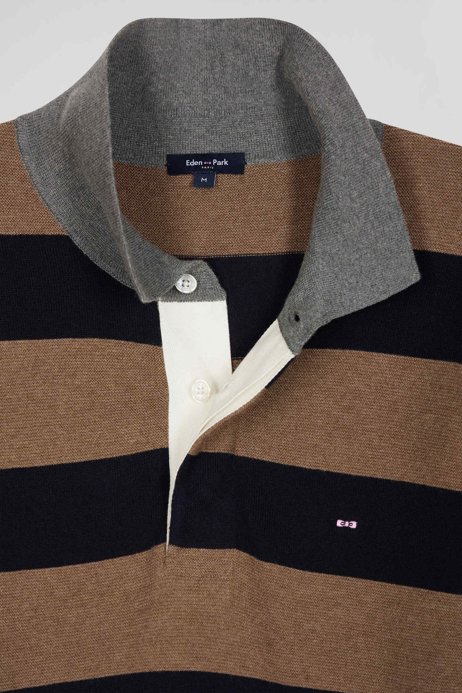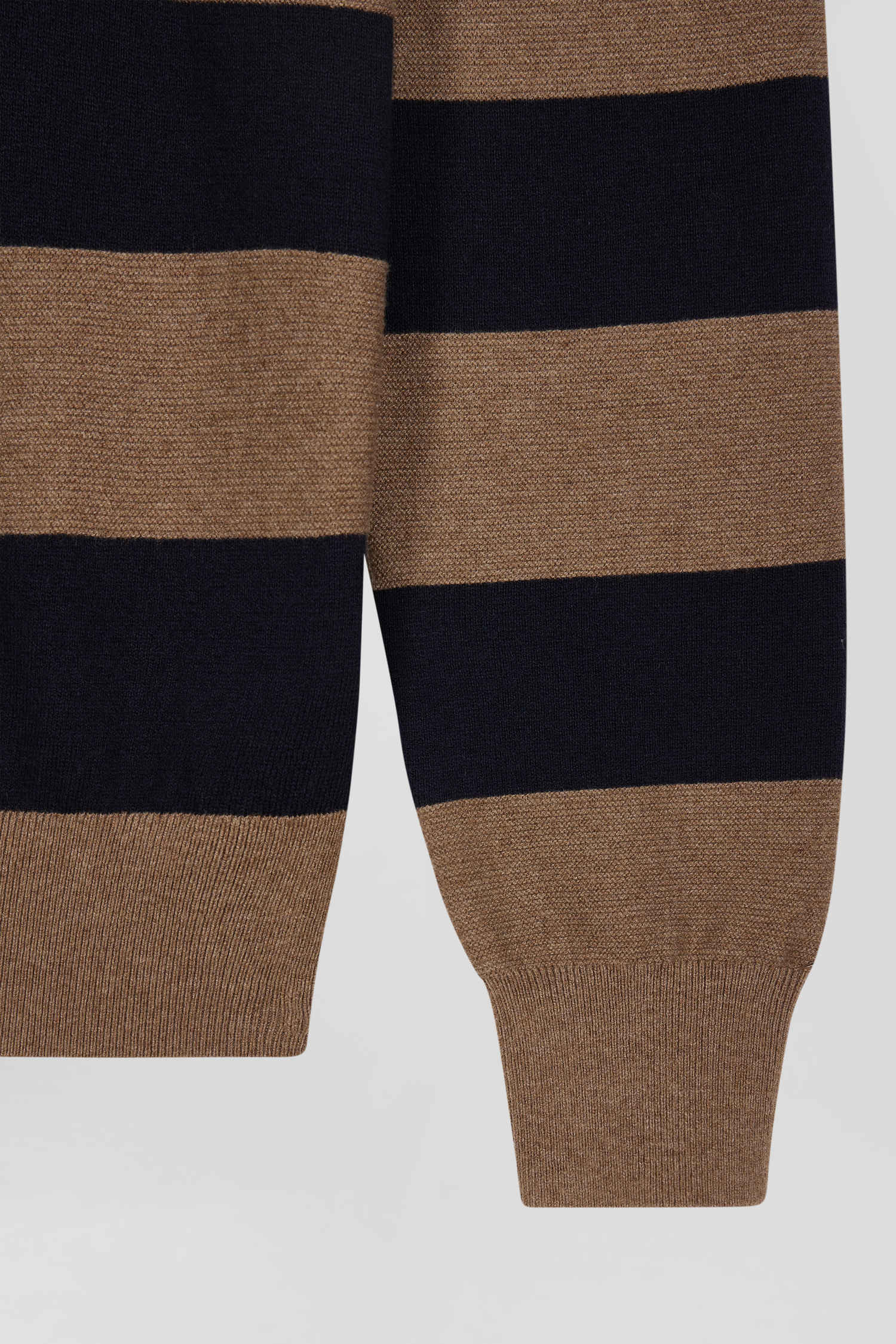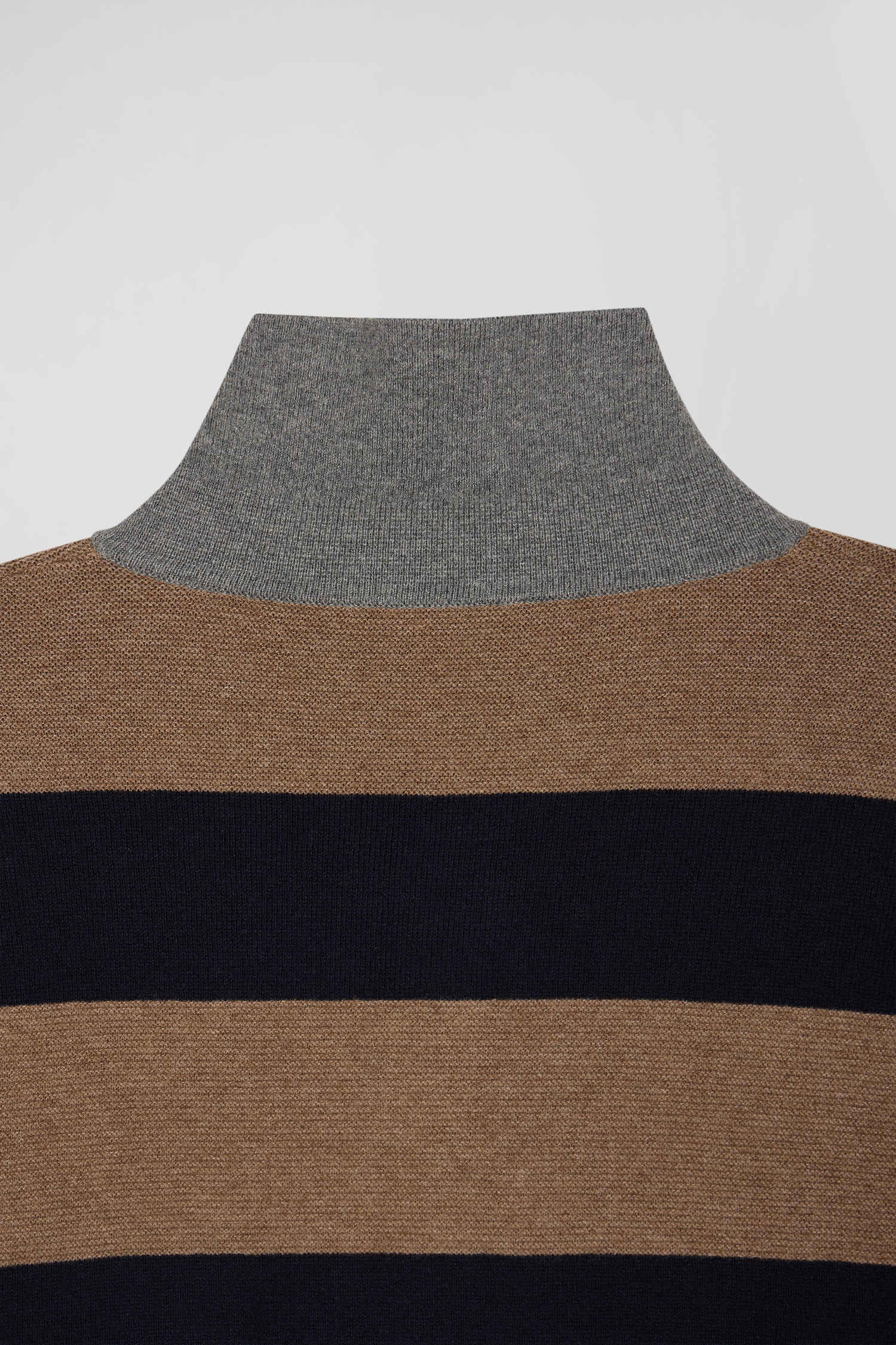 Pull col maillot cerclé en coton et cachemire marron coupe Regular