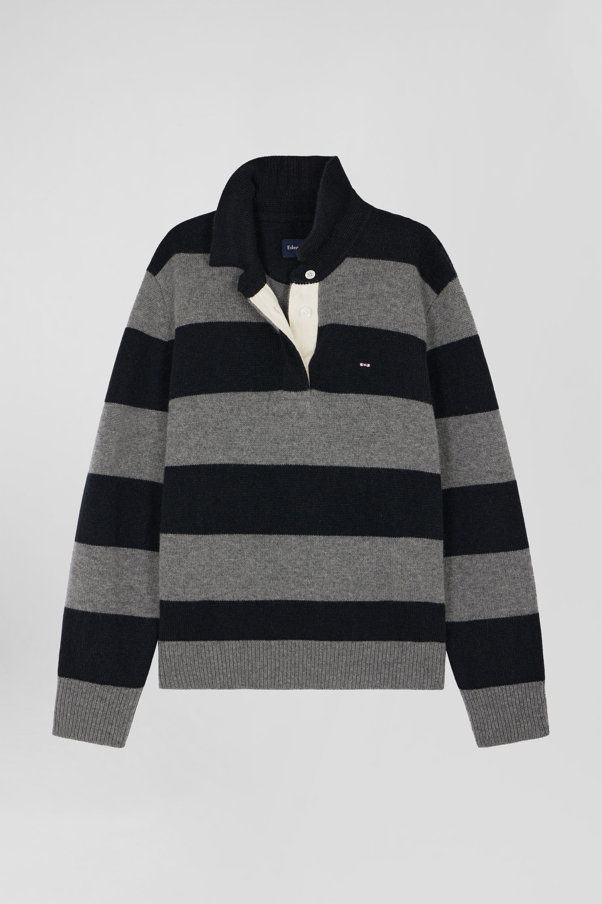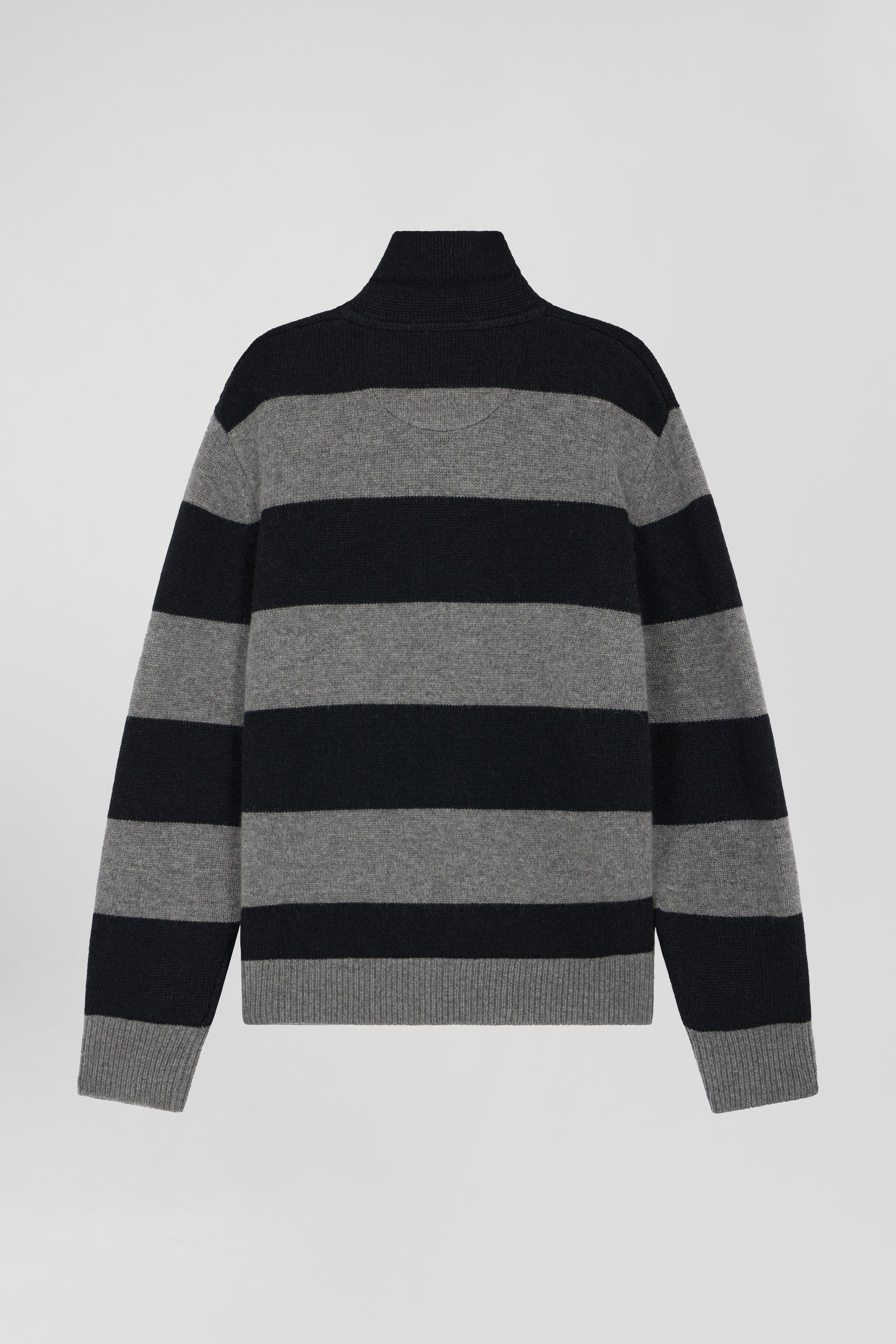 Pull col polo en laine et cachemire rayé noir et gris