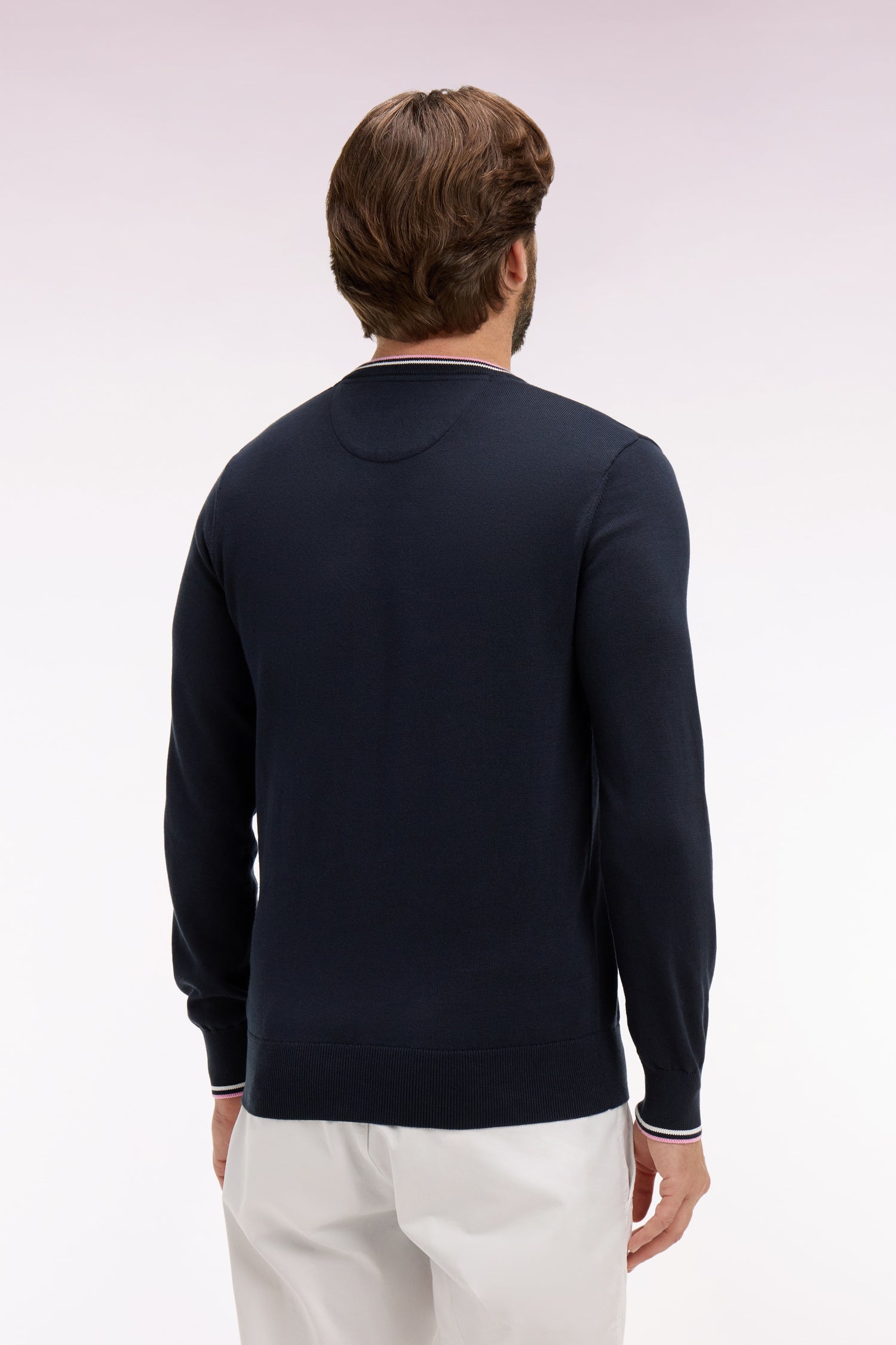 Intemporel et raffiné, ce pull à col rond en coton marine tricoté en point jersey ponctué de fines rayures en liseré s’impose comme un essentiel du vestiaire sport chic Eden Park. Confectionné avec le plus grand soin dans un coton de qualité supérieure, il offre un confort exceptionnel et une tenue irréprochable. Sa sobriété élégante et ses finitions soignées en font une pièce polyvalente, idéale aussi bien pour le bureau que pour les moments de détente. Symbole du chic décontracté à la française, ce pull traverse les saisons avec aisance et distinction. Un basique revisité, fidèle aux codes de la Maison.