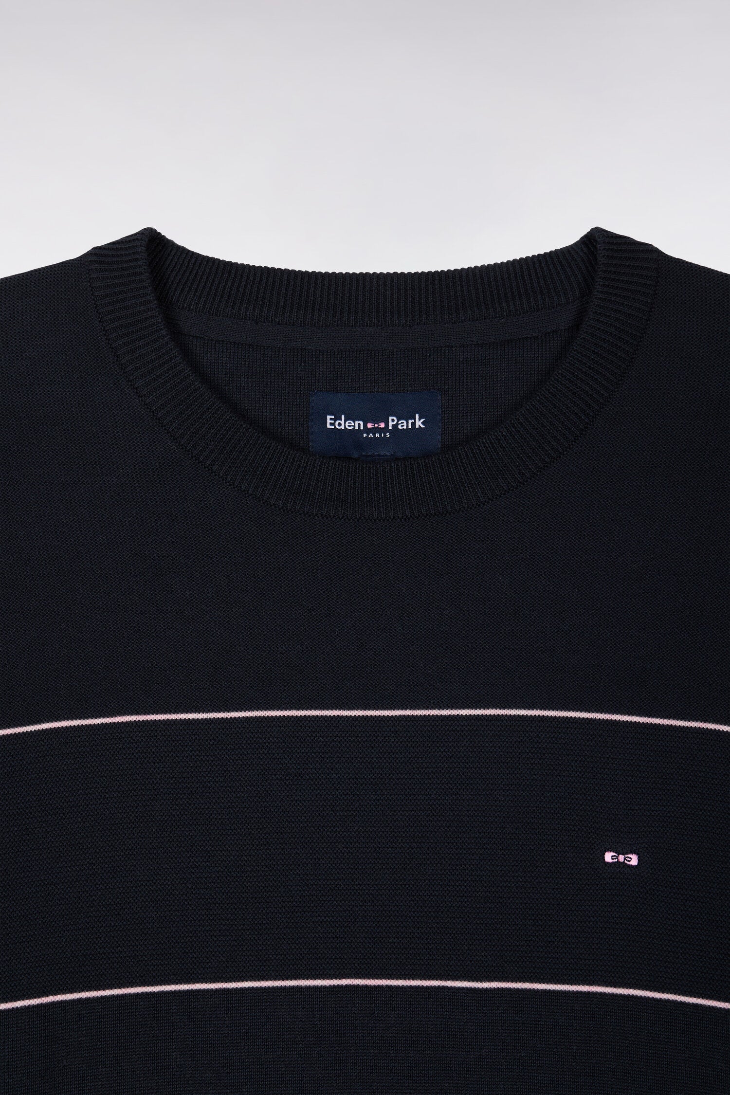 Ce pull en coton pur séduit par ses rayures intemporelles contrastées, clin d’œil à l’héritage rugby de notre Maison. Sa maille douce et sa coupe droite en font une pièce confortable et facile à porter, idéale pour une allure chic décontractée. Témoignage du savoir-faire des ateliers Eden Park ce modèle à l'intérieur de col contrasté alterne également un tricotage point ottoman et un point jersey pour plus de texture. Un essentiel revisité qui traverse les saisons avec élégance dans cette version classique ou en pull polo à manches courtes.