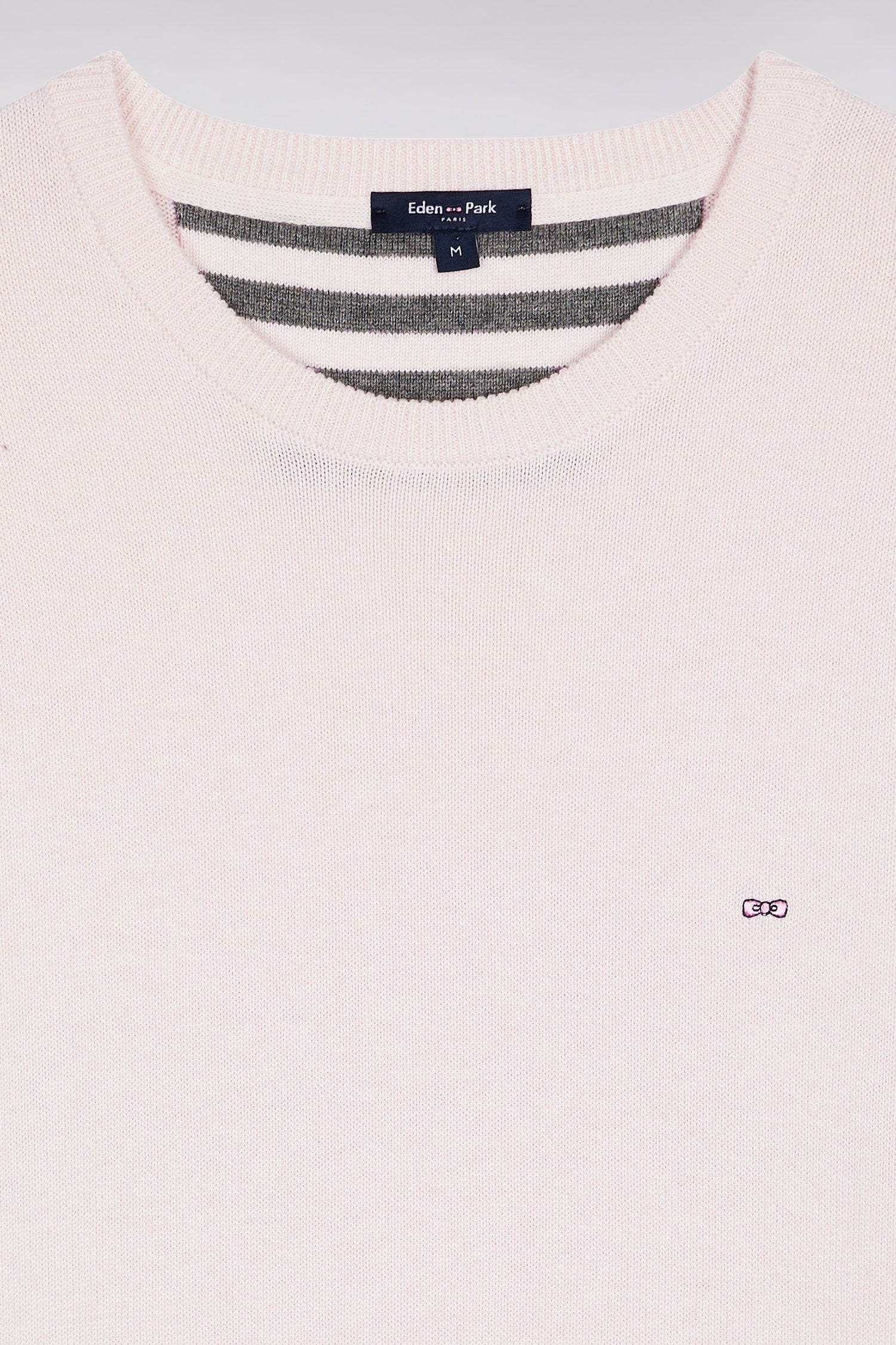 Ce pull à col rond joue la carte de l’intemporalité avec sa coupe droite et son tricot en laine et coton mélangés. Une broderie nœud papillon sur la poitrine et une demi-lune intérieur à rayures rugby signe discrètement son appartenance au vestiaire Eden Park. Facile à associer à une chemise ou à un t-shirt, ce pull décliné dans une riche palette de coloris accompagne toutes vos silhouettes de saison.