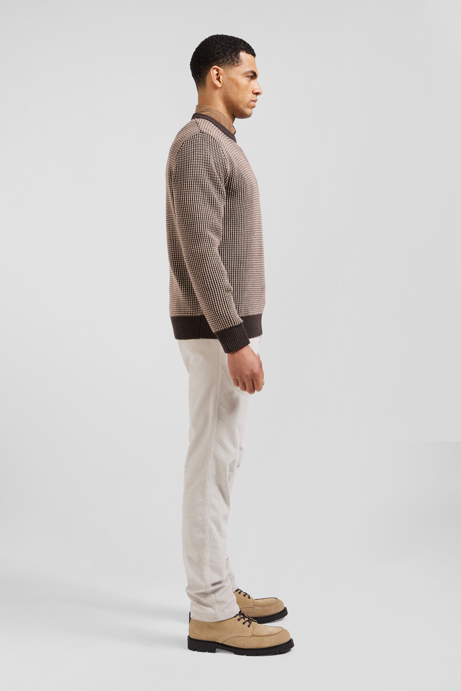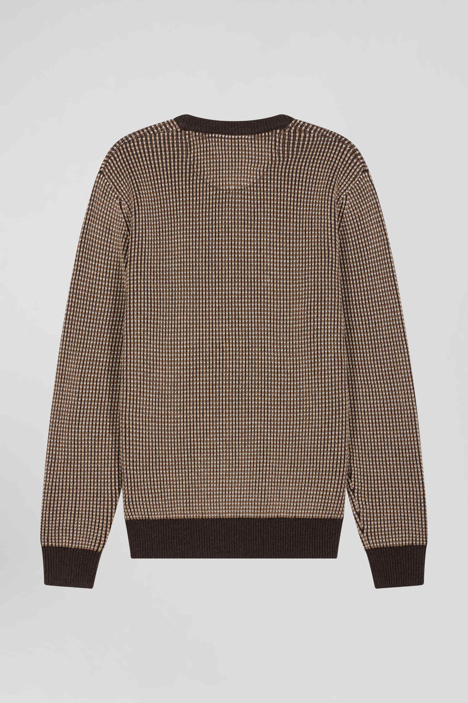 Pull col rond en laine et coton marron coupe Regular