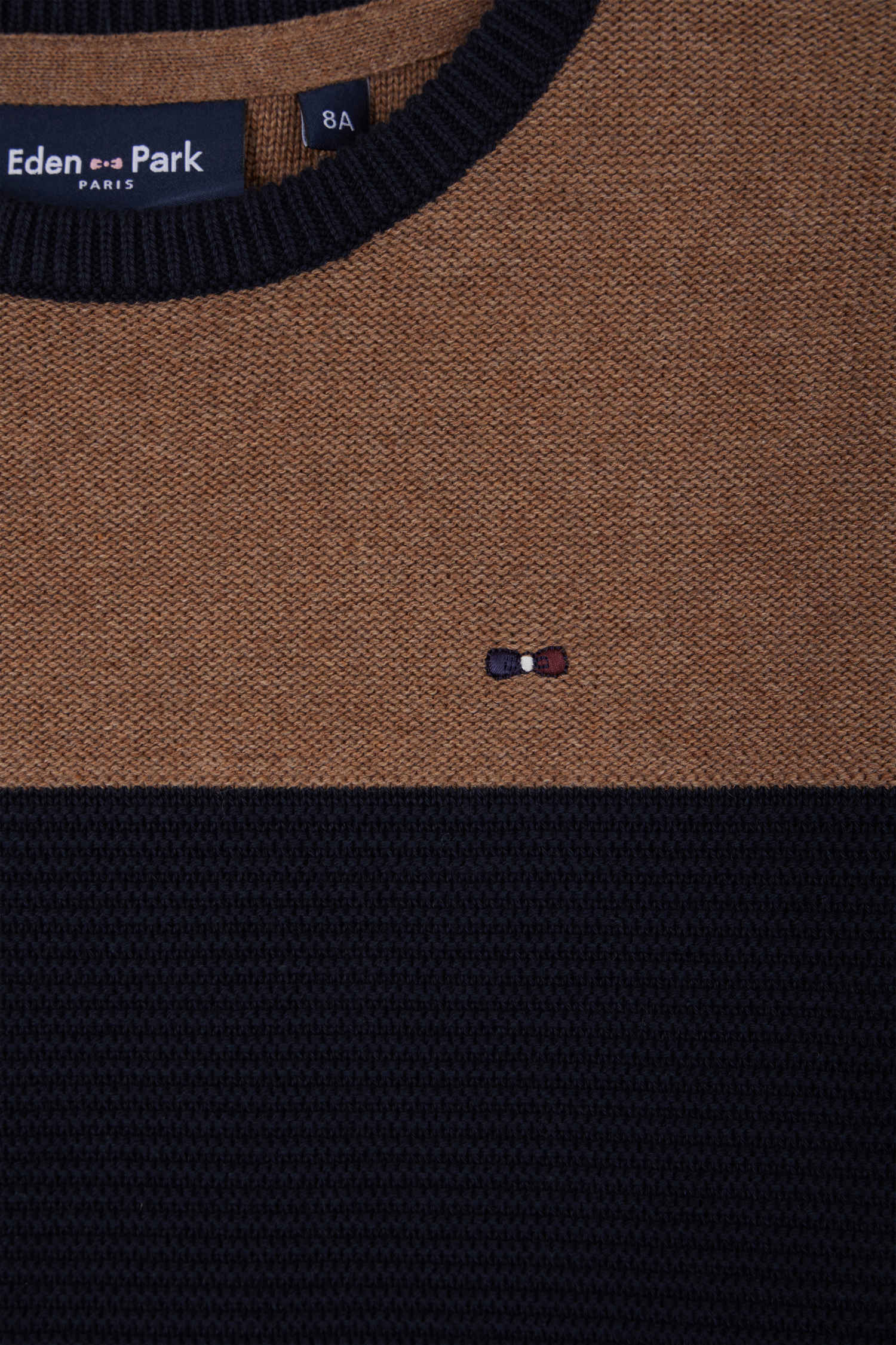 Égayez le vestiaire automne-hiver de votre enfant avec ce pull en coton à col rond. Facile à enfiler et à associer, ce pull en fibre de coton douce et durable offre un confort exceptionnel tout au long de la journée. Idéal pour les aventures quotidiennes, ce pull tricolore se dote de notre emblématique broderie nœud papillon dans sa version tricolore.