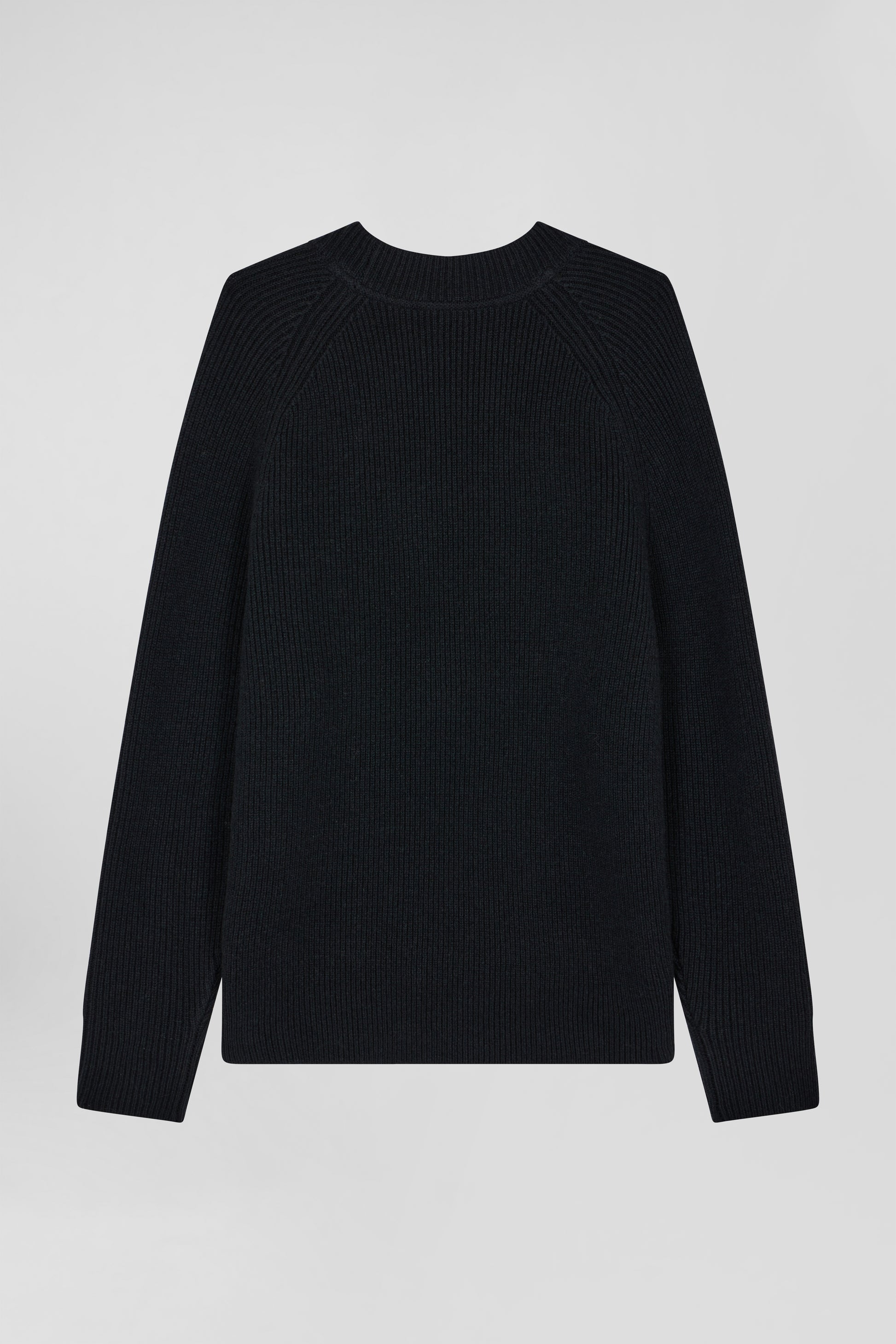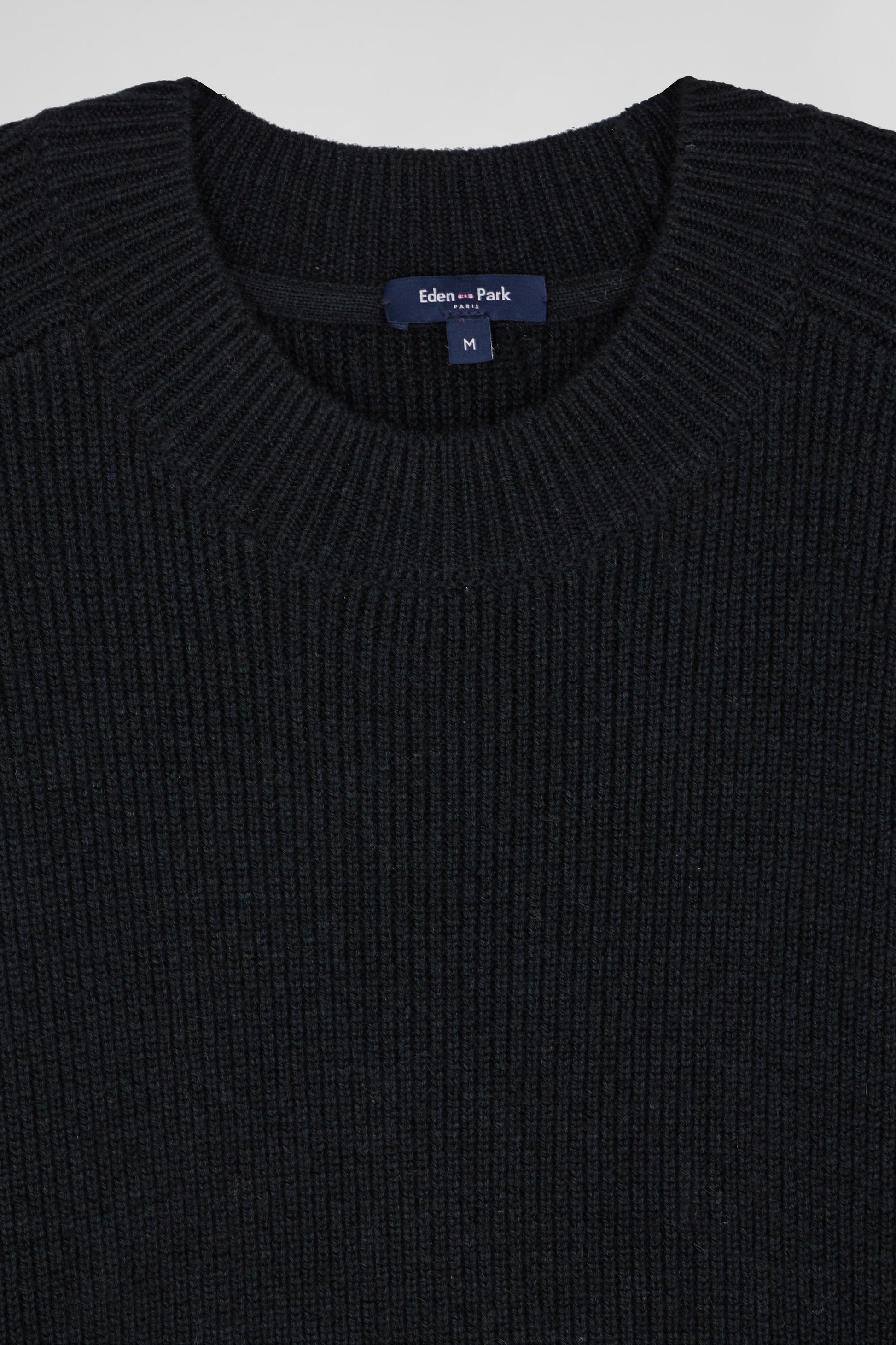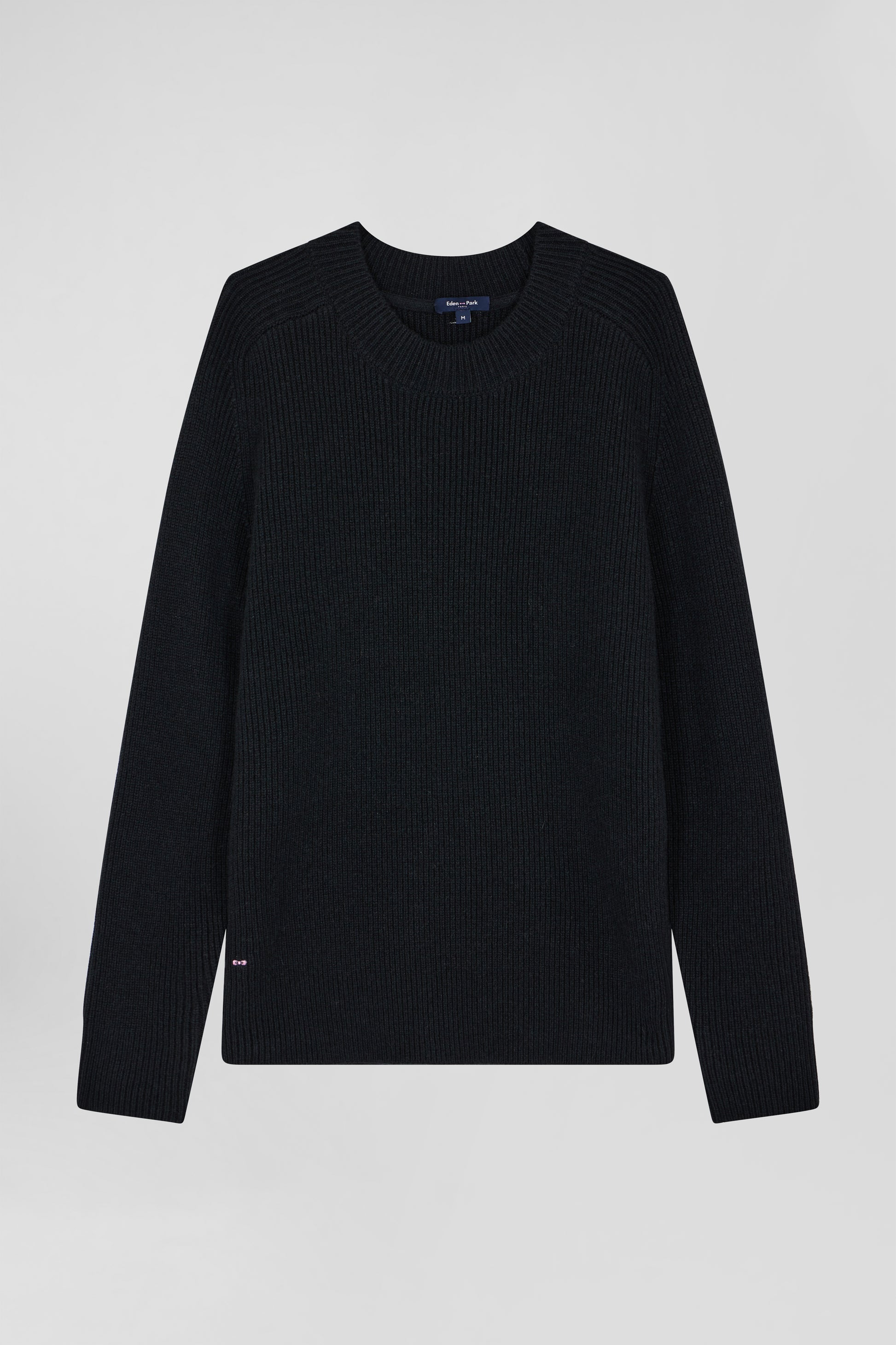 Pull col rond uni en laine et cachemire noir coupe Regular