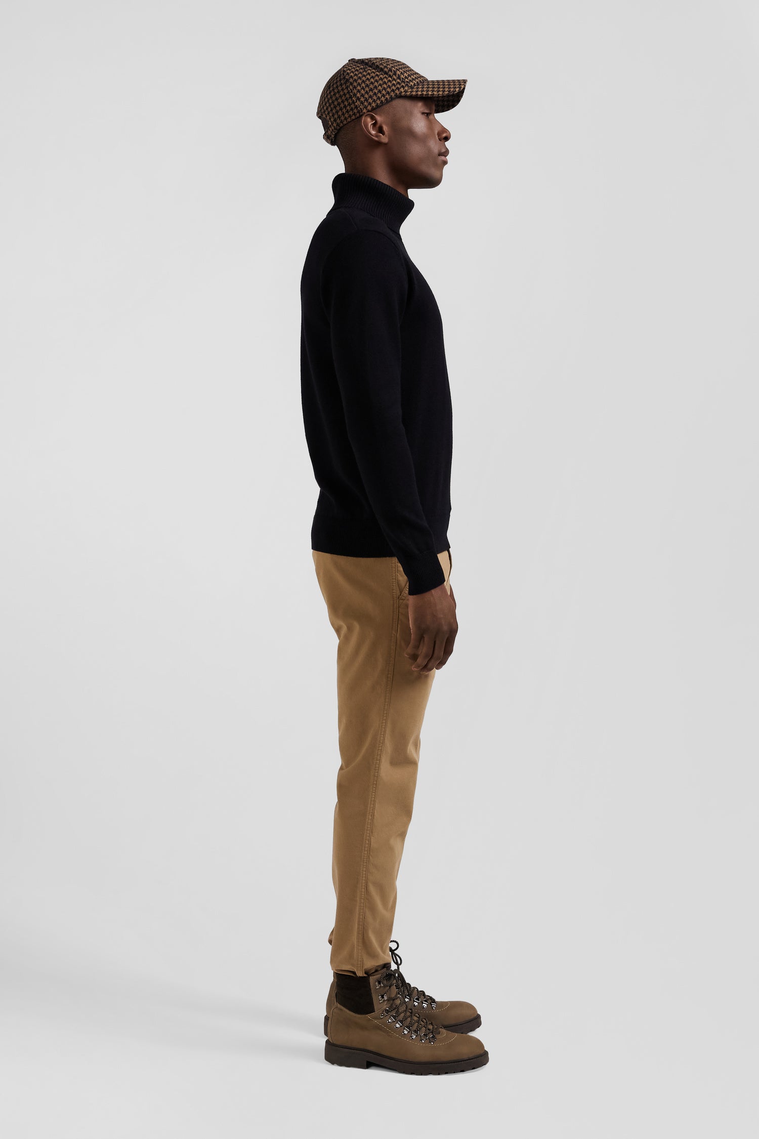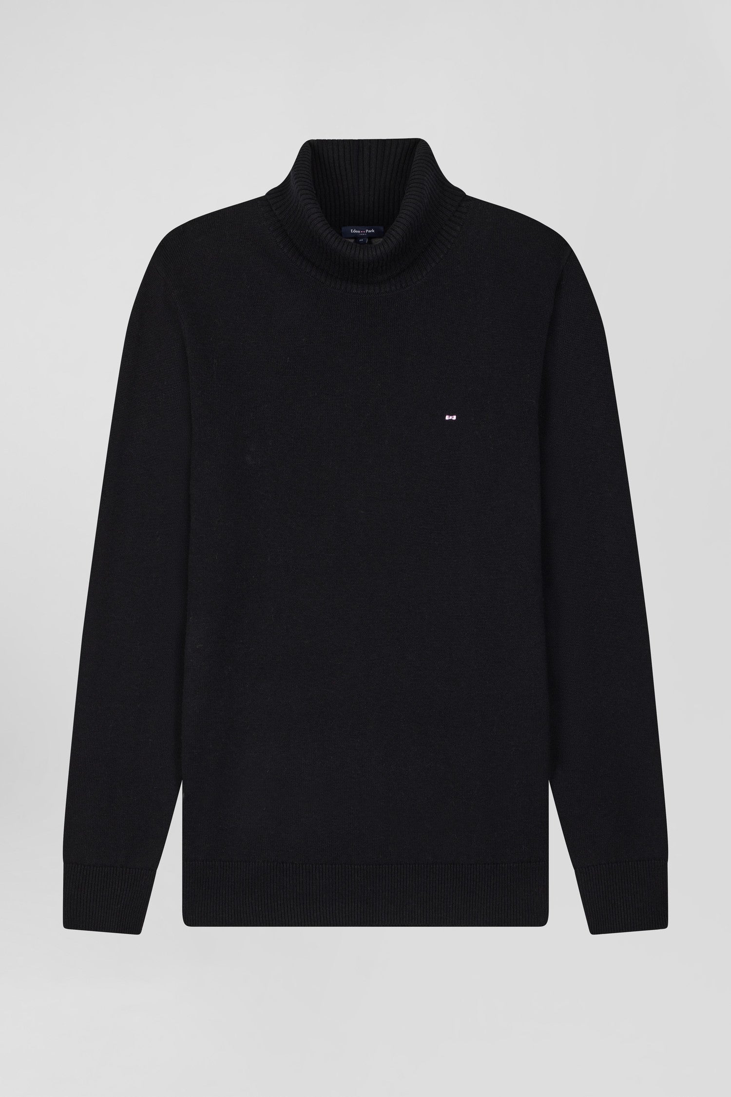 Pull col roulé en laine et coton noir coupe Regular